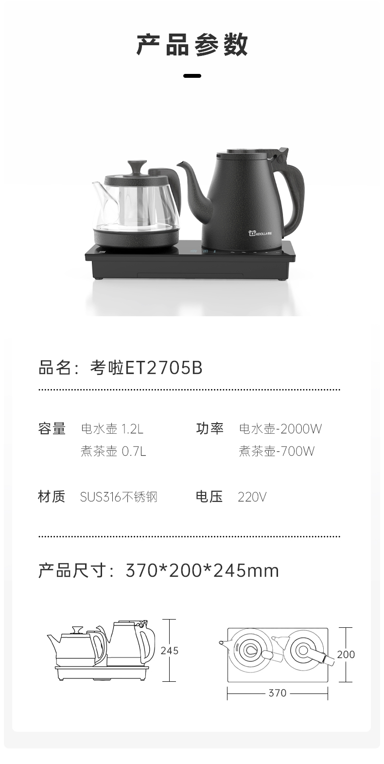 考啦ET2705煮茶器茶台烧水壶一体泡茶专用自动底部上水恒温煮茶壶ET2705B考啦-全自动系列 嵌入式三合一(2000w大功率)(黑色)