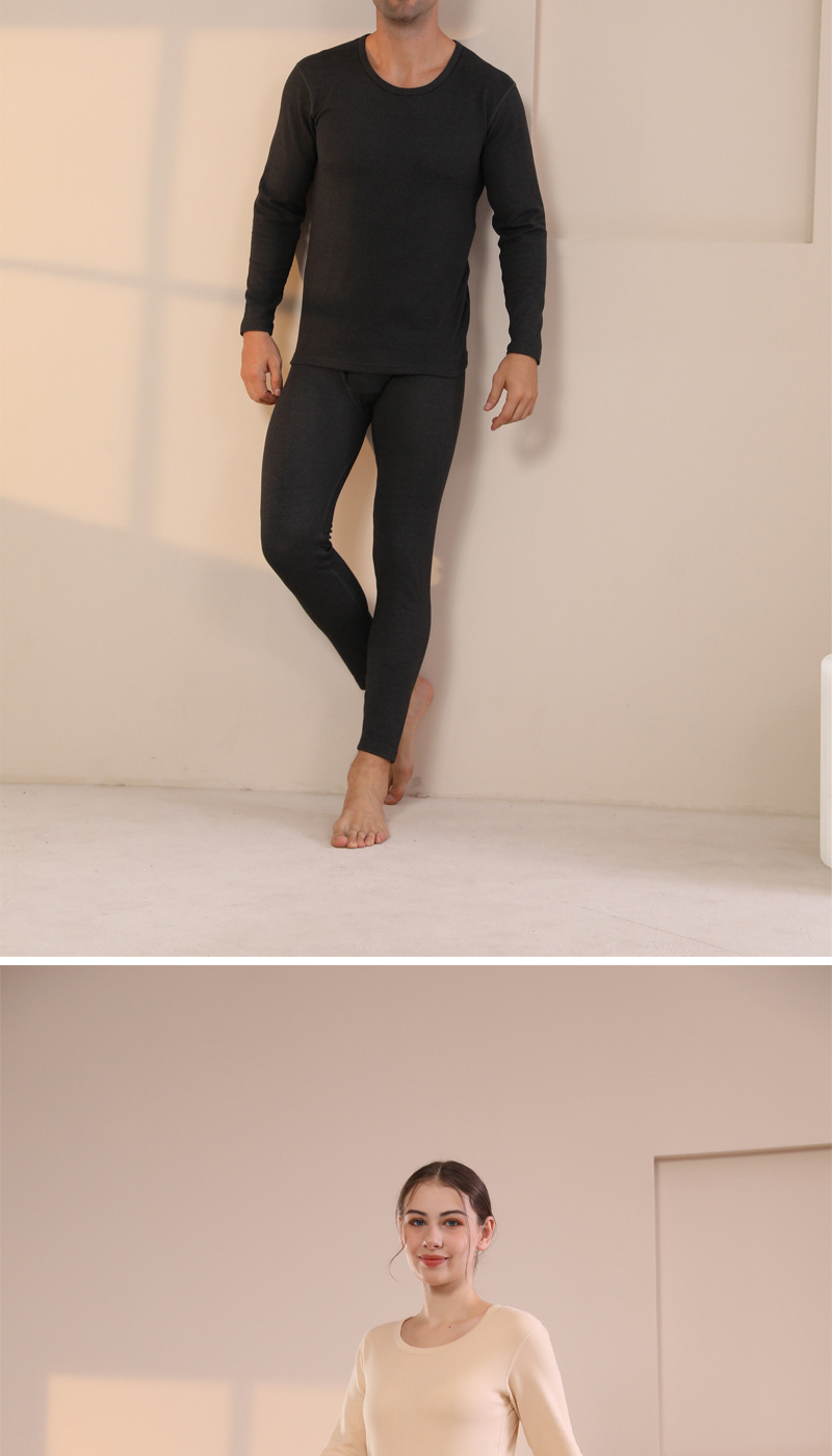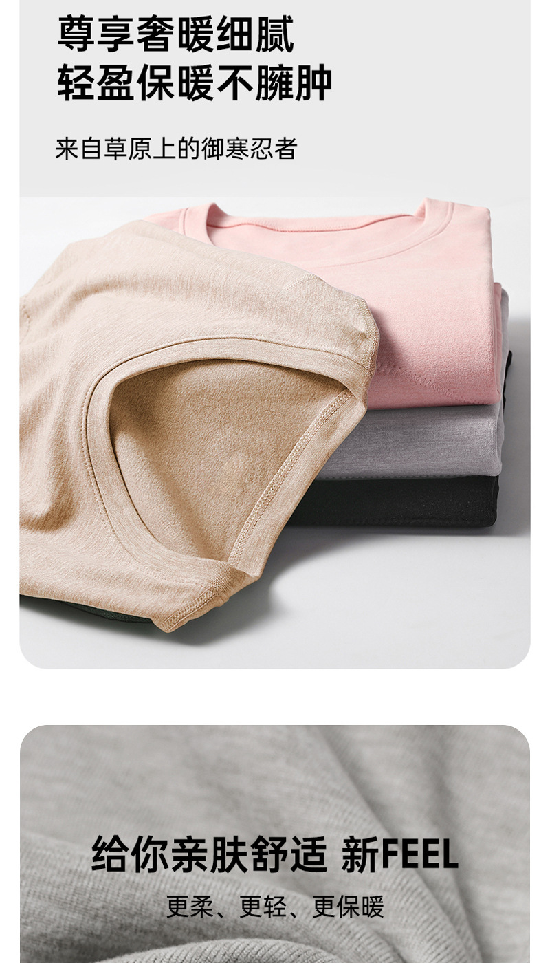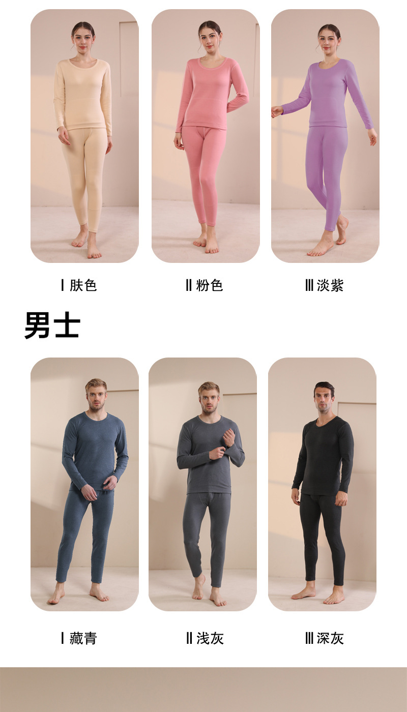 加大码男士保暖内衣套装 圆领羊毛保暖衣情侣 女士秋衣秋裤 加厚打底衫秋冬