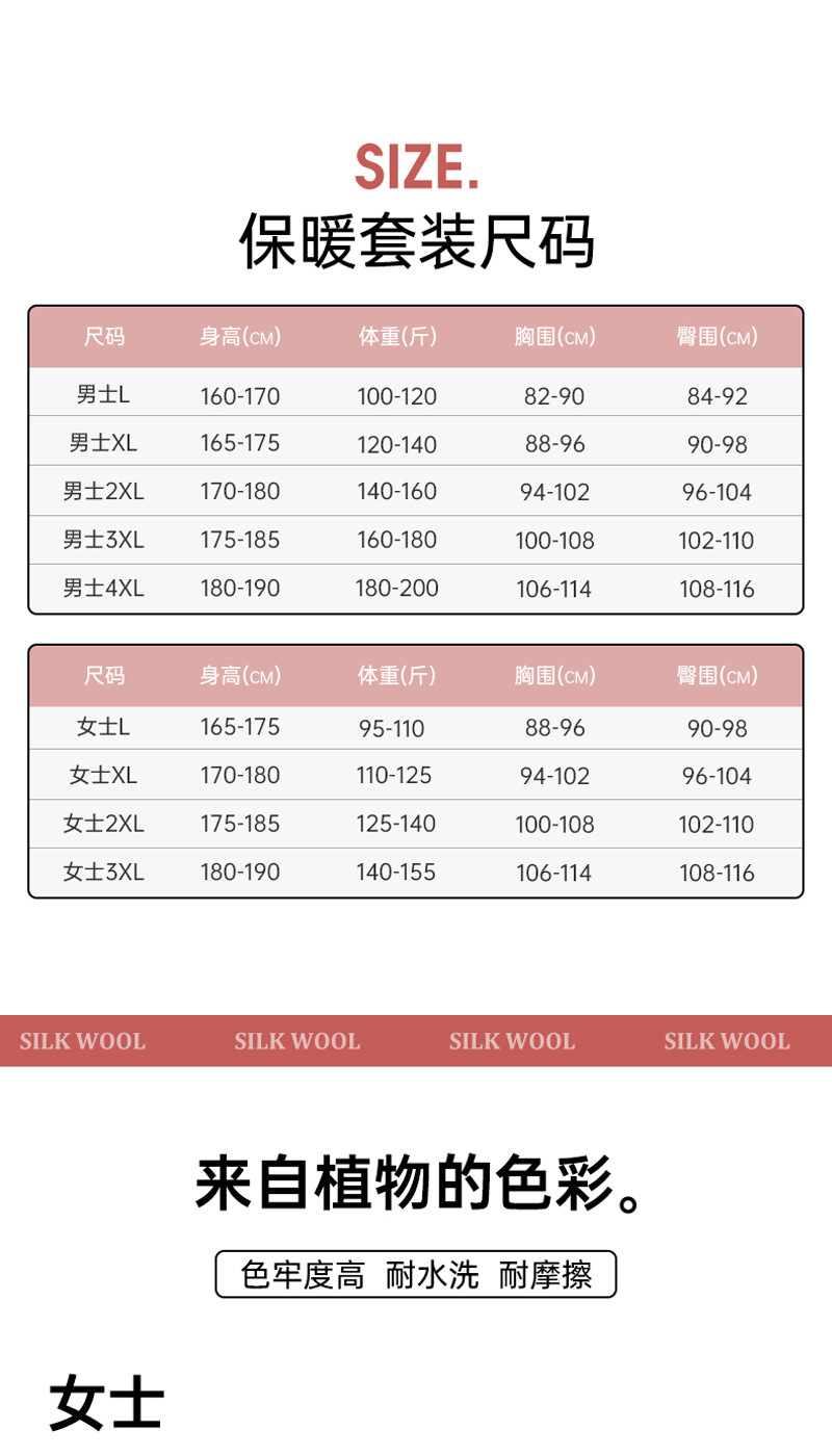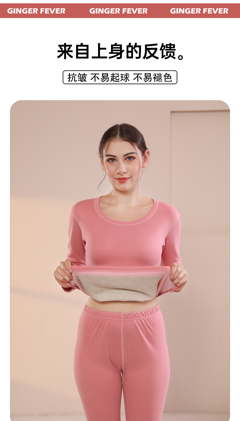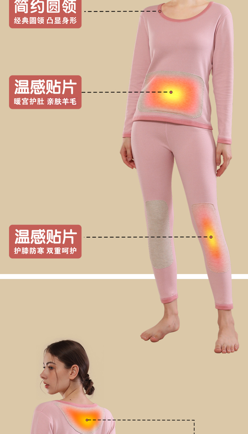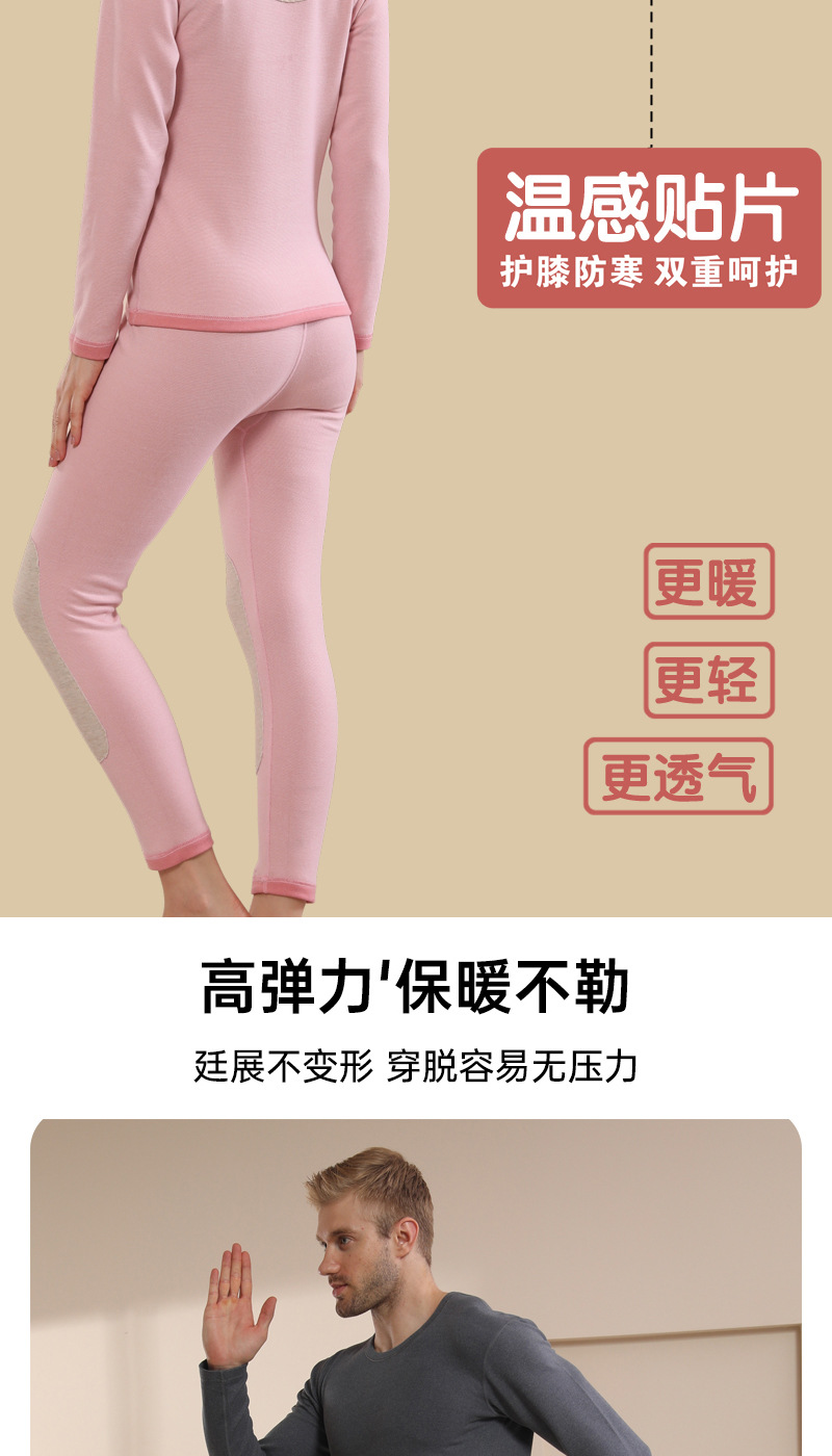 加大码男士保暖内衣套装 圆领羊毛保暖衣情侣 女士秋衣秋裤 加厚打底衫秋冬