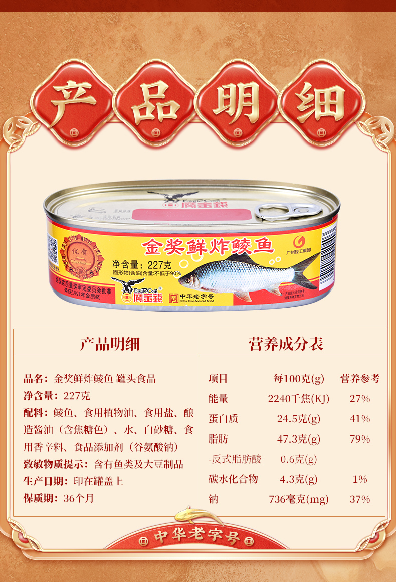 鹰金钱牌拉盖鲜炸鲮鱼(TY)