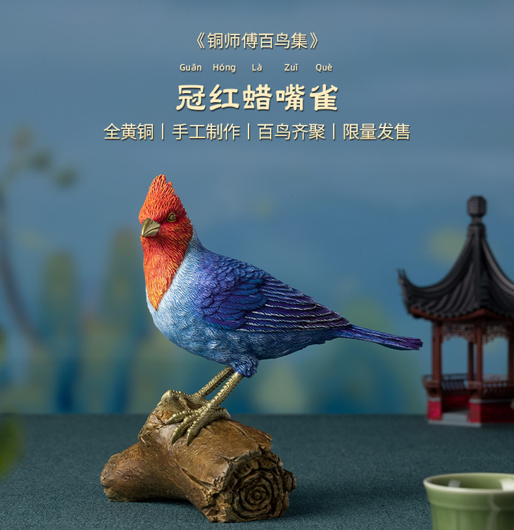 铜师傅 铜摆件《铜师傅百鸟集》之冠红蜡嘴雀 家居饰品桌面摆件