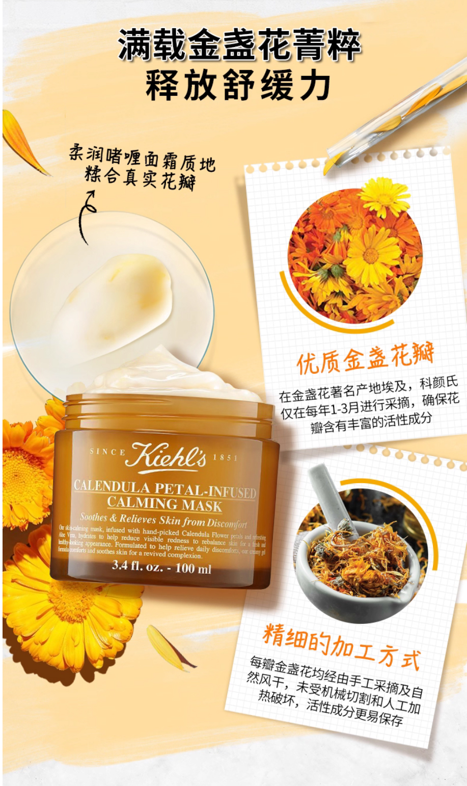 【10.1神价秒杀】科颜氏金盏花舒缓保湿面膜100ml涂抹式舒缓保湿补水滋润(限25年11月)