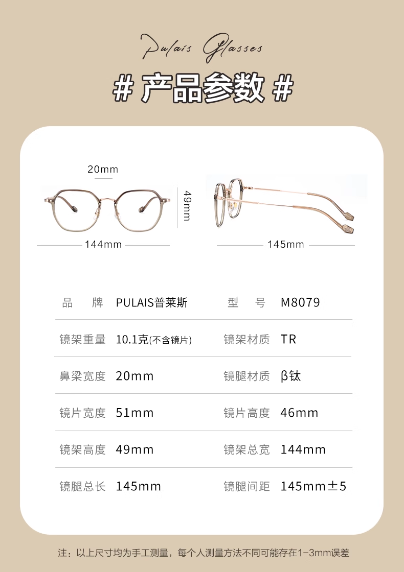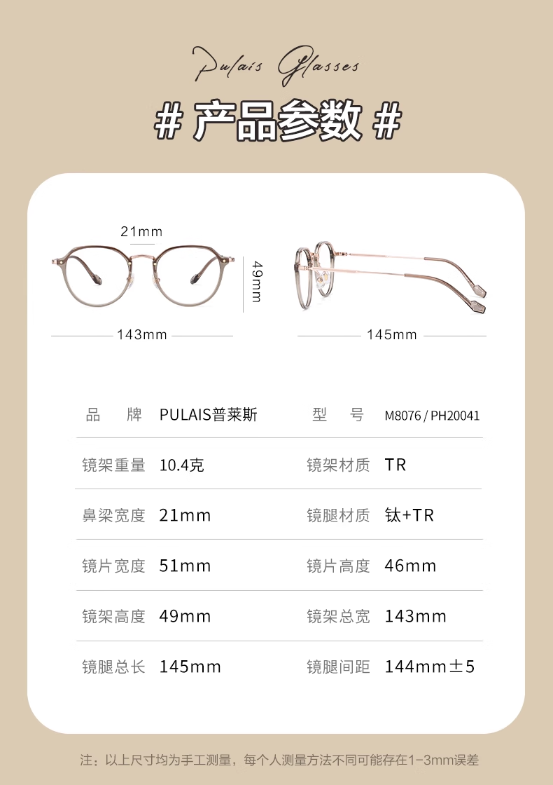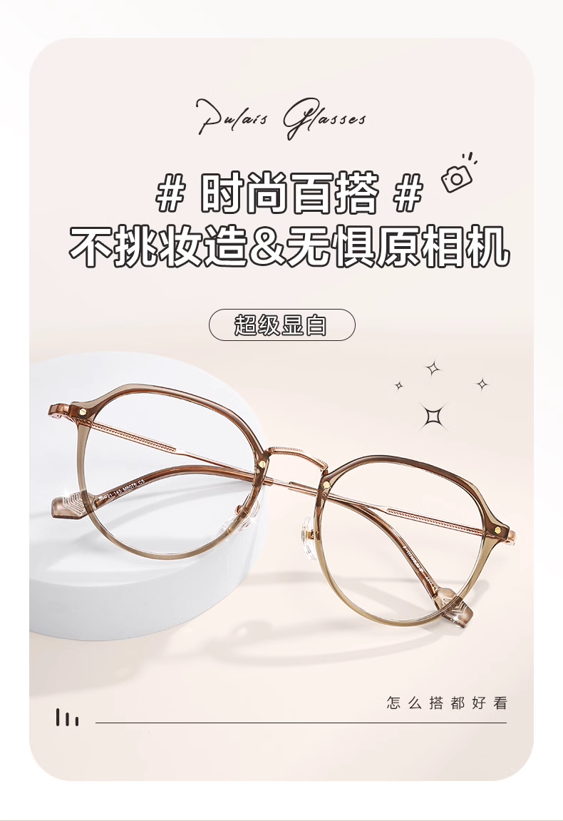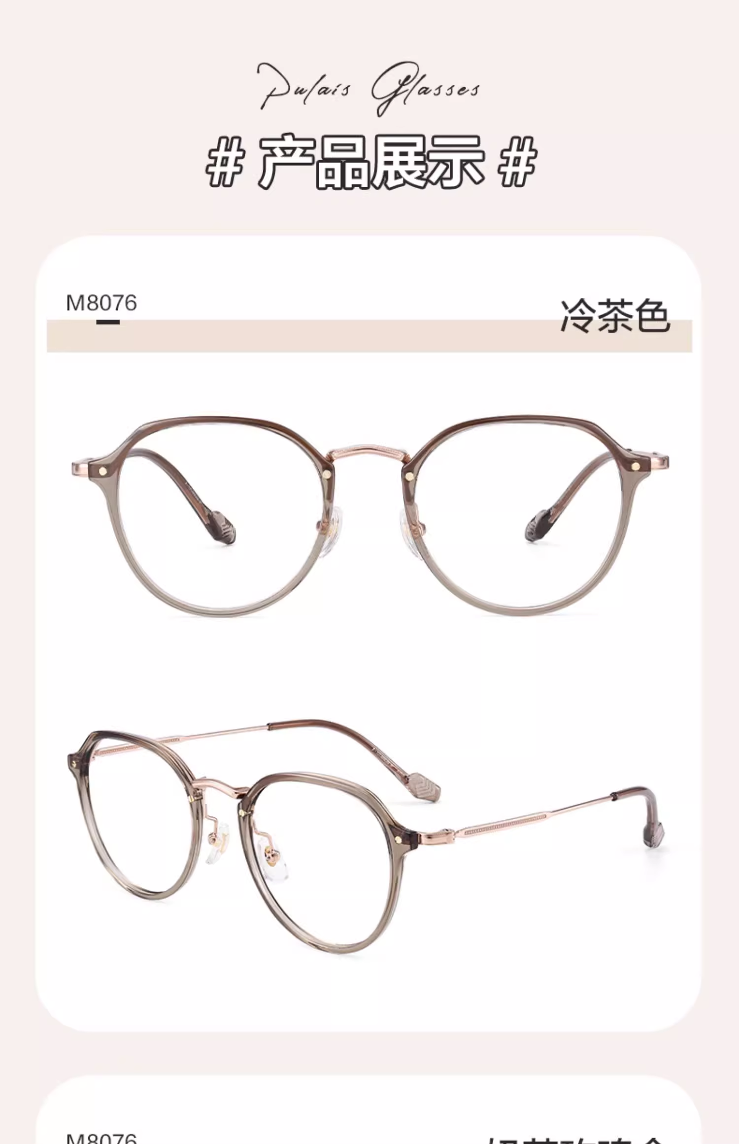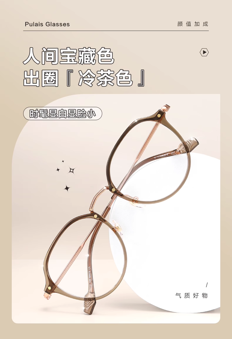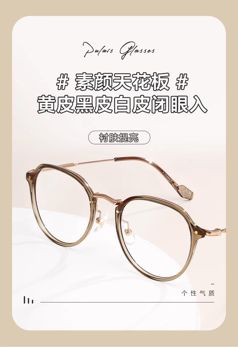 普莱斯2023年新款光学镜架PH20041 人间宝藏色 出圈冷茶色 时髦显白显脸小 钛+TR材质 男女通用 多色可选