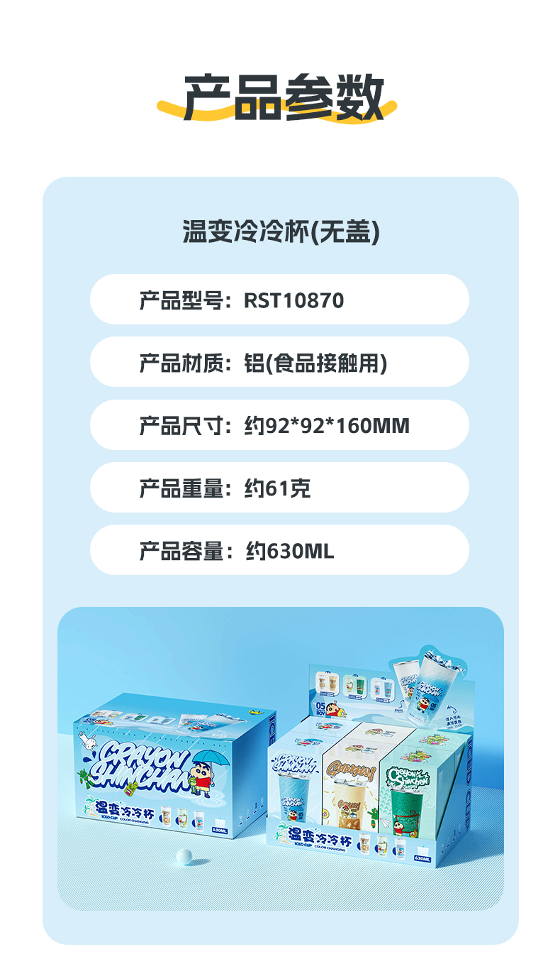 洛克 rock 蜡笔小新 温变冷冷杯 无盖 630mL/有盖930ml