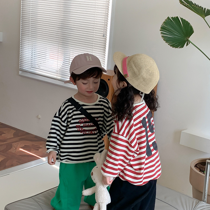 【39.9/2件】儿童条纹字母卫衣春秋新款韩版数字印花长袖圆领上衣聚