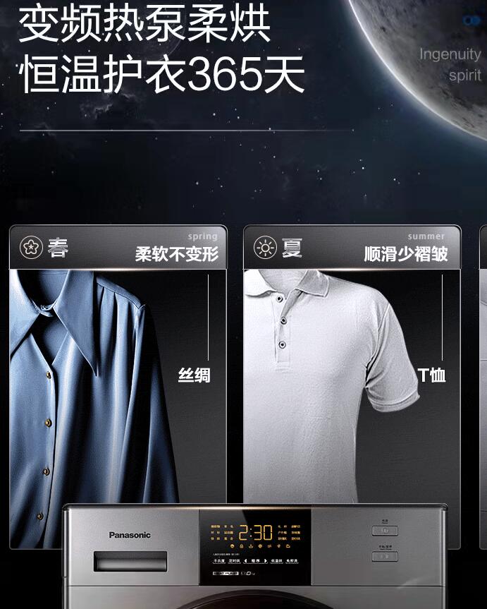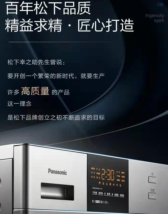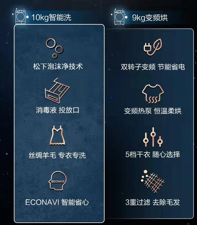 松下(Panasonic)滚筒洗衣机10kg+热泵原装变频烘干机9kg 洗烘套装 智控免熨烫 E10C+EH900G