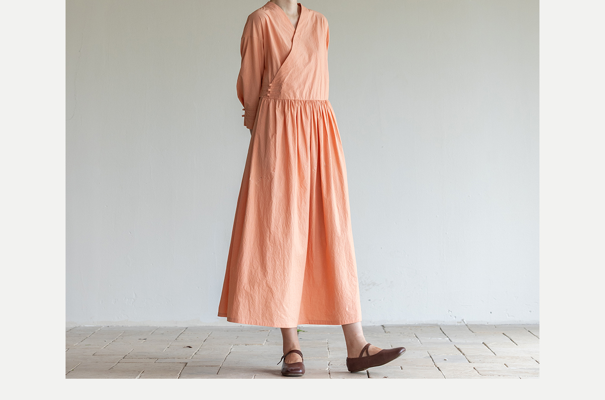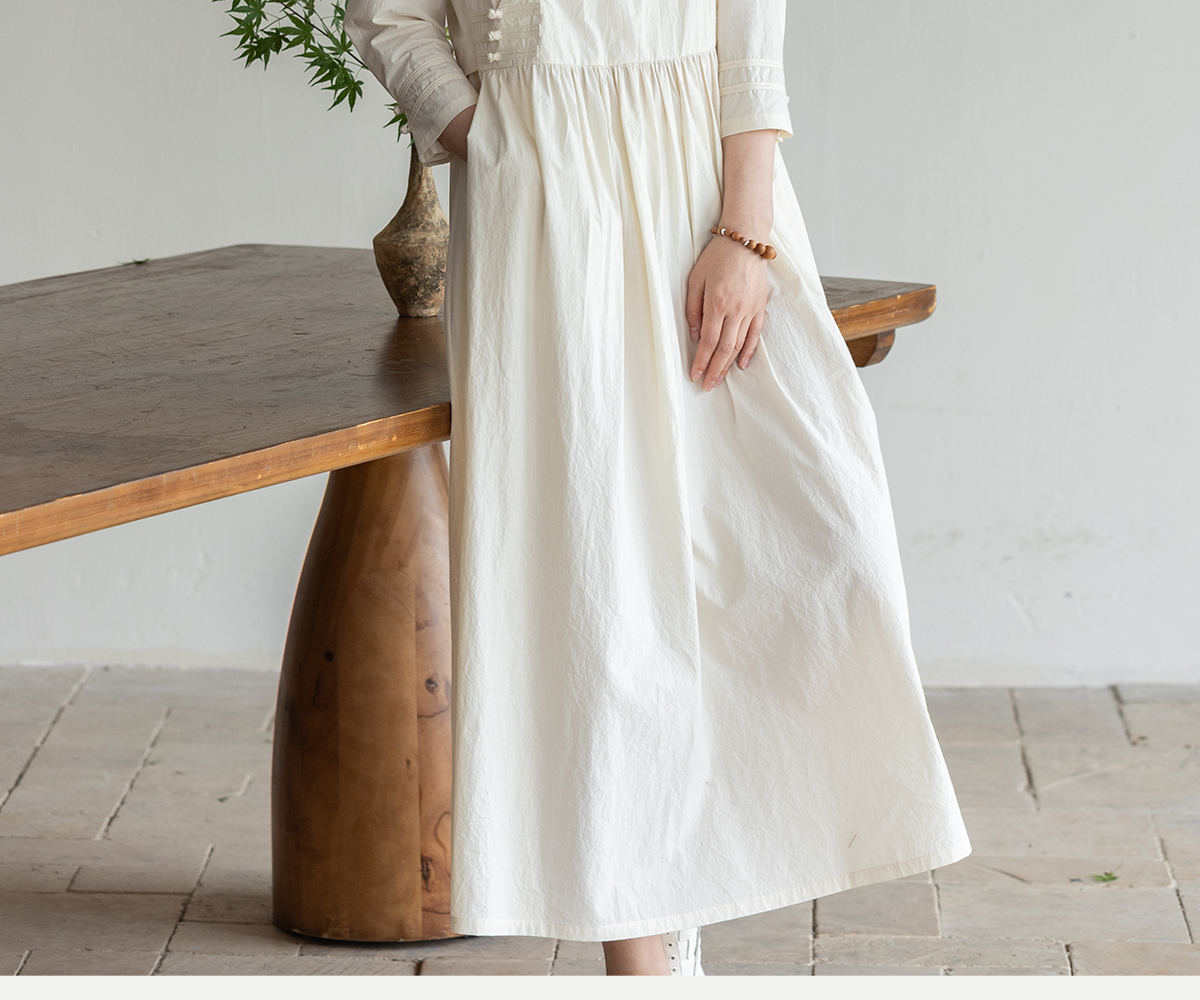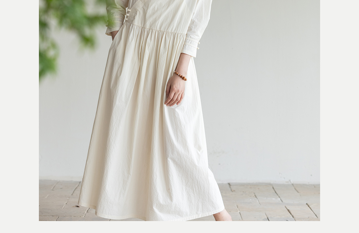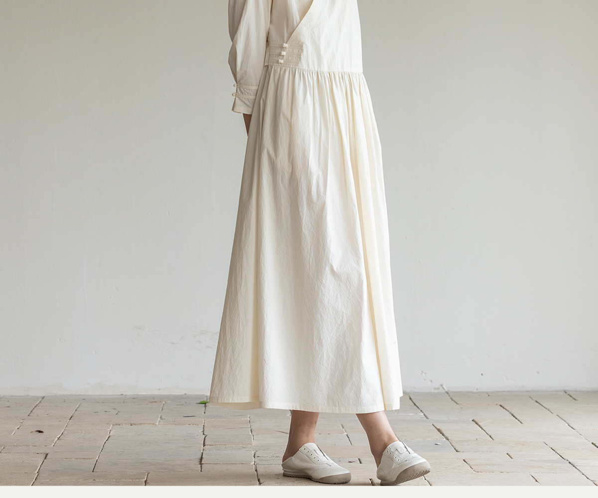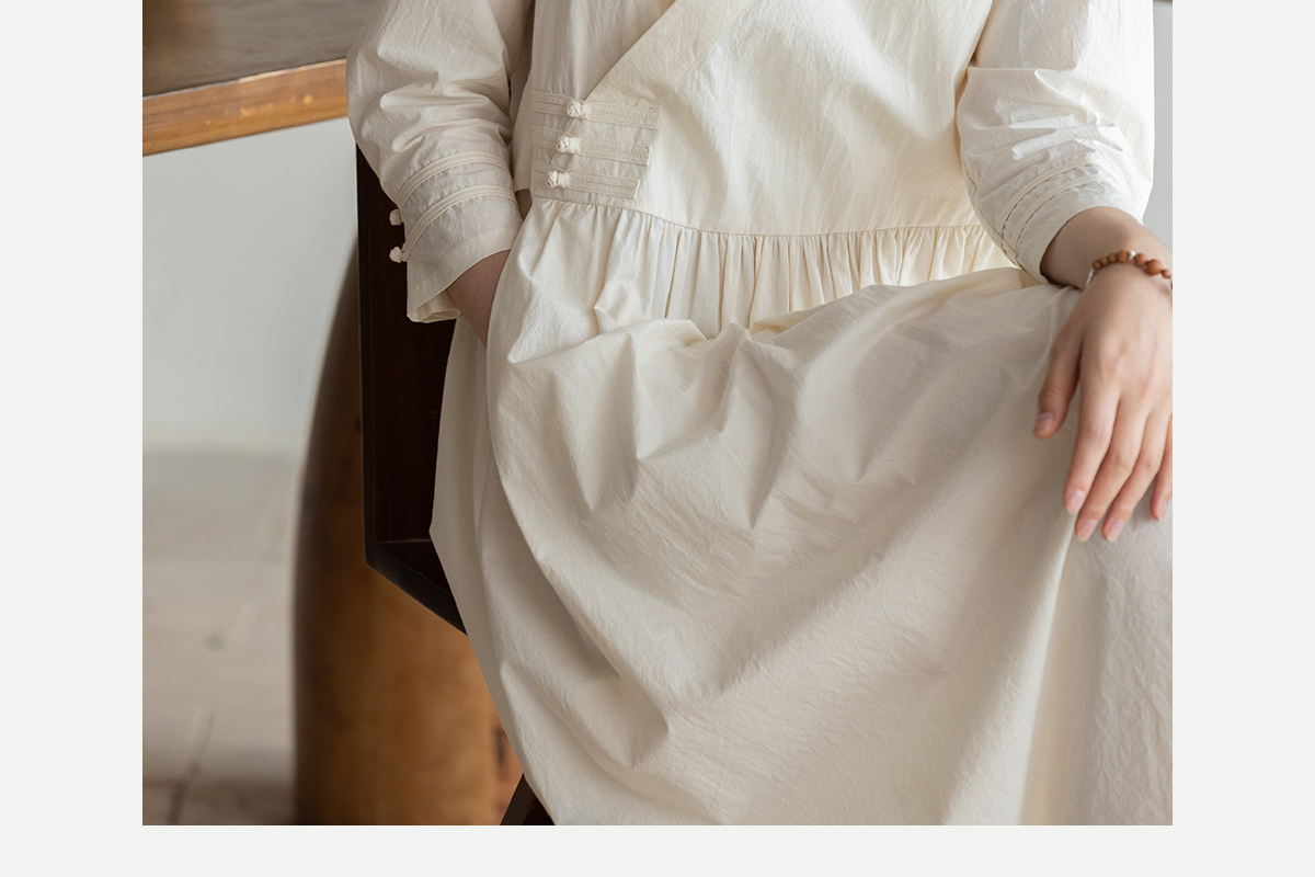 牧衣游原创 60支纯棉净色连衣裙新款质朴禅意复古宽松长裙 月牙弯