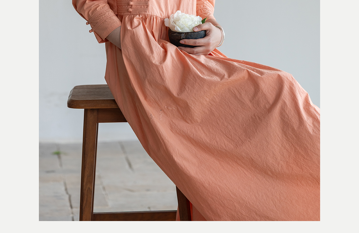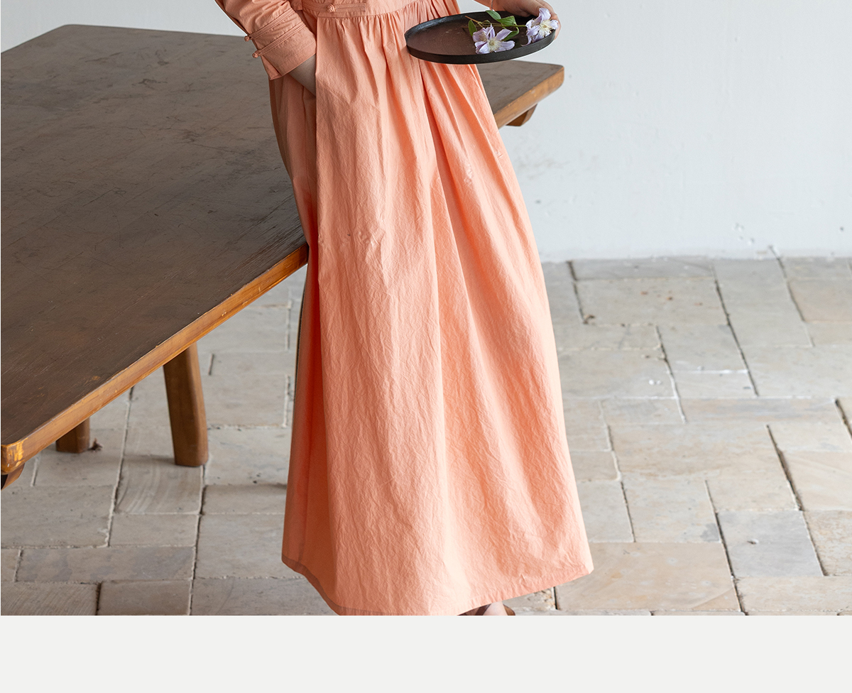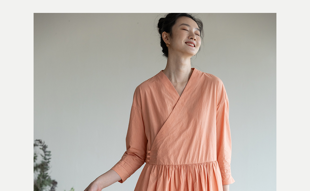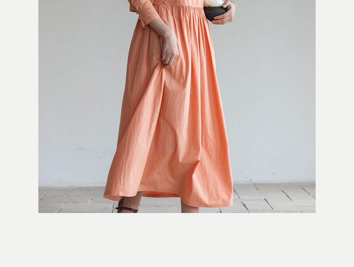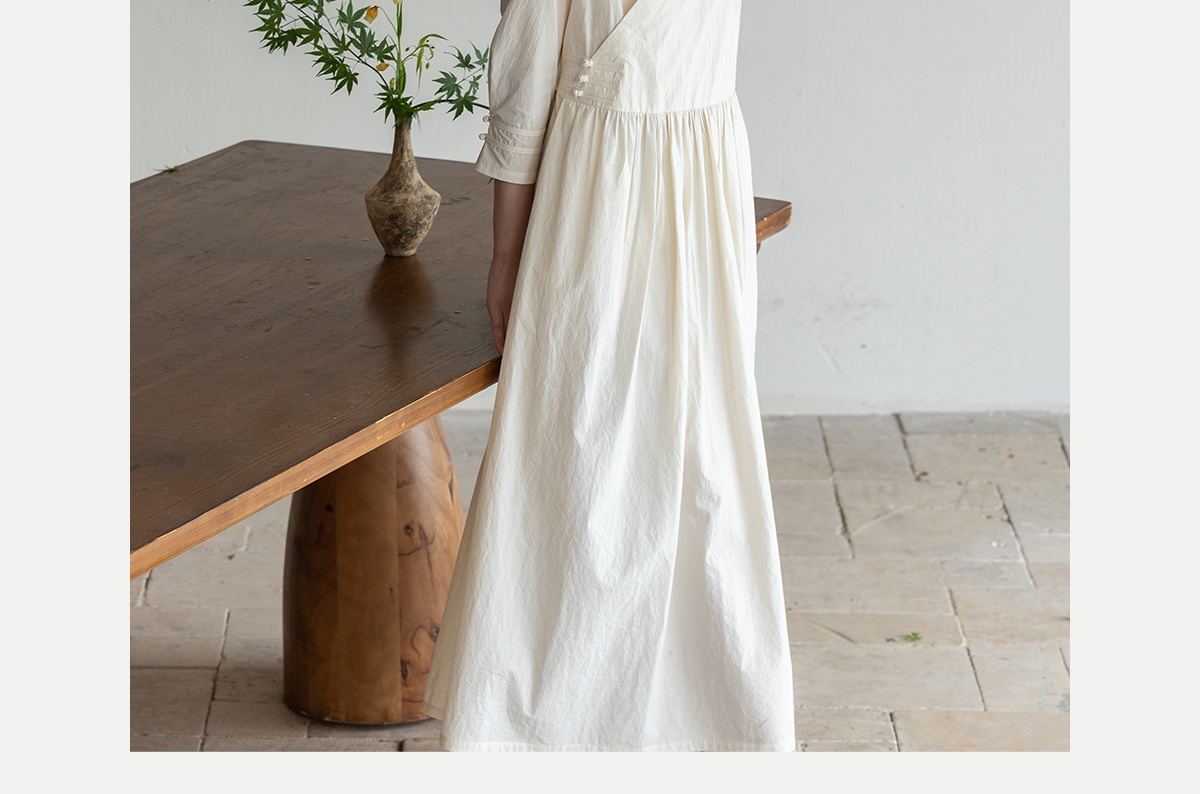 牧衣游原创 60支纯棉净色连衣裙新款质朴禅意复古宽松长裙 月牙弯