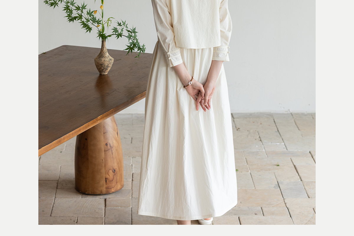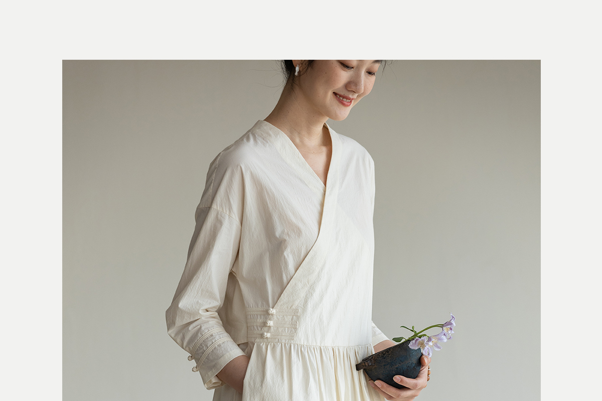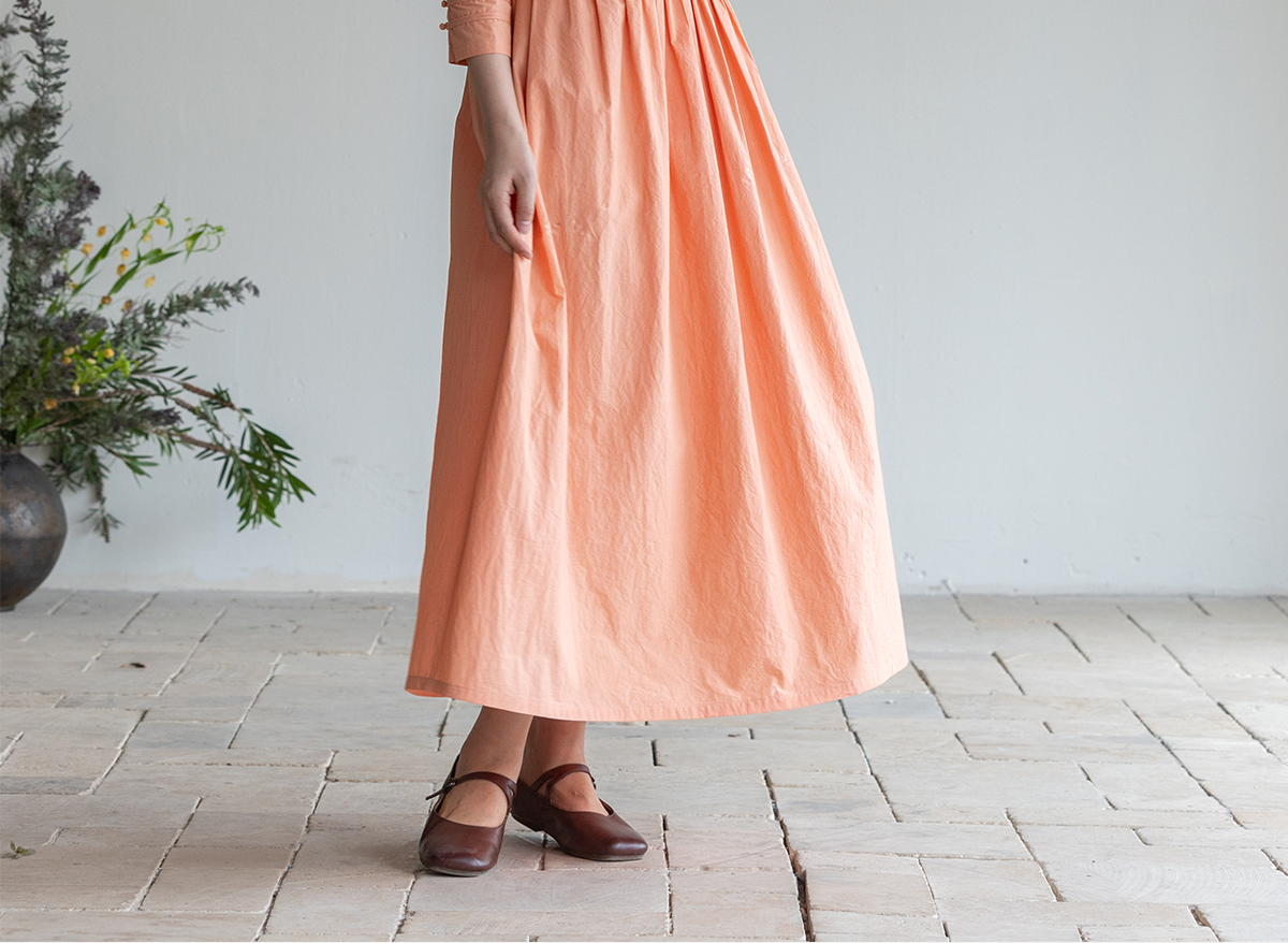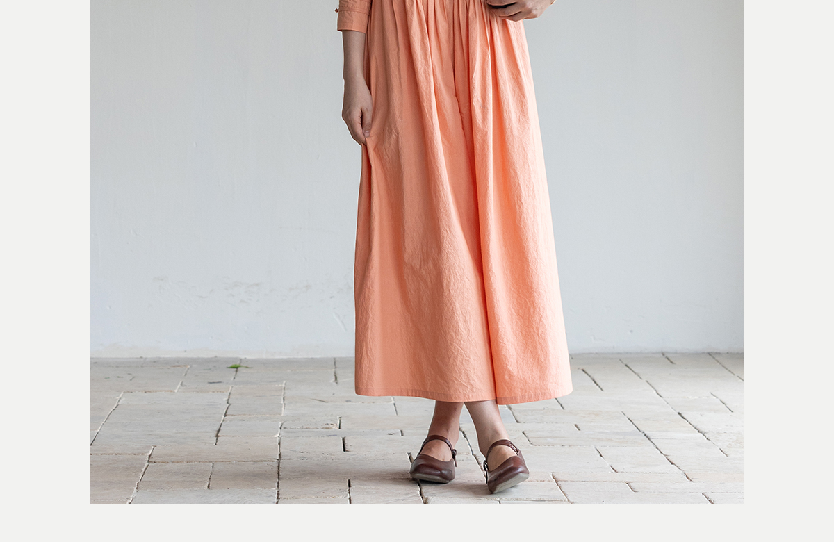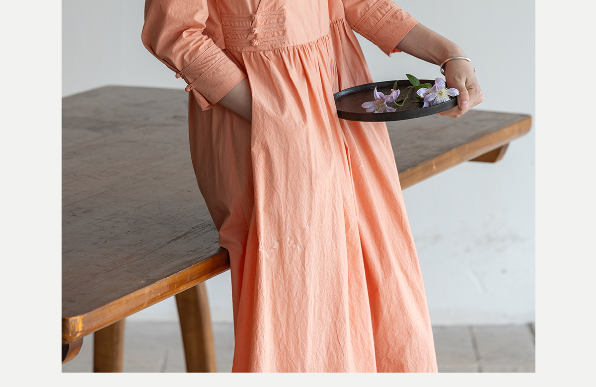牧衣游原创 60支纯棉净色连衣裙新款质朴禅意复古宽松长裙 月牙弯