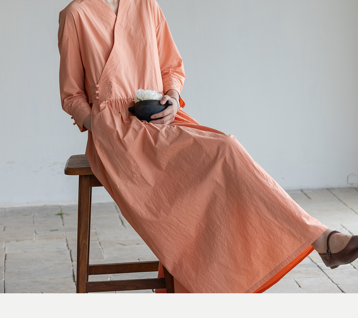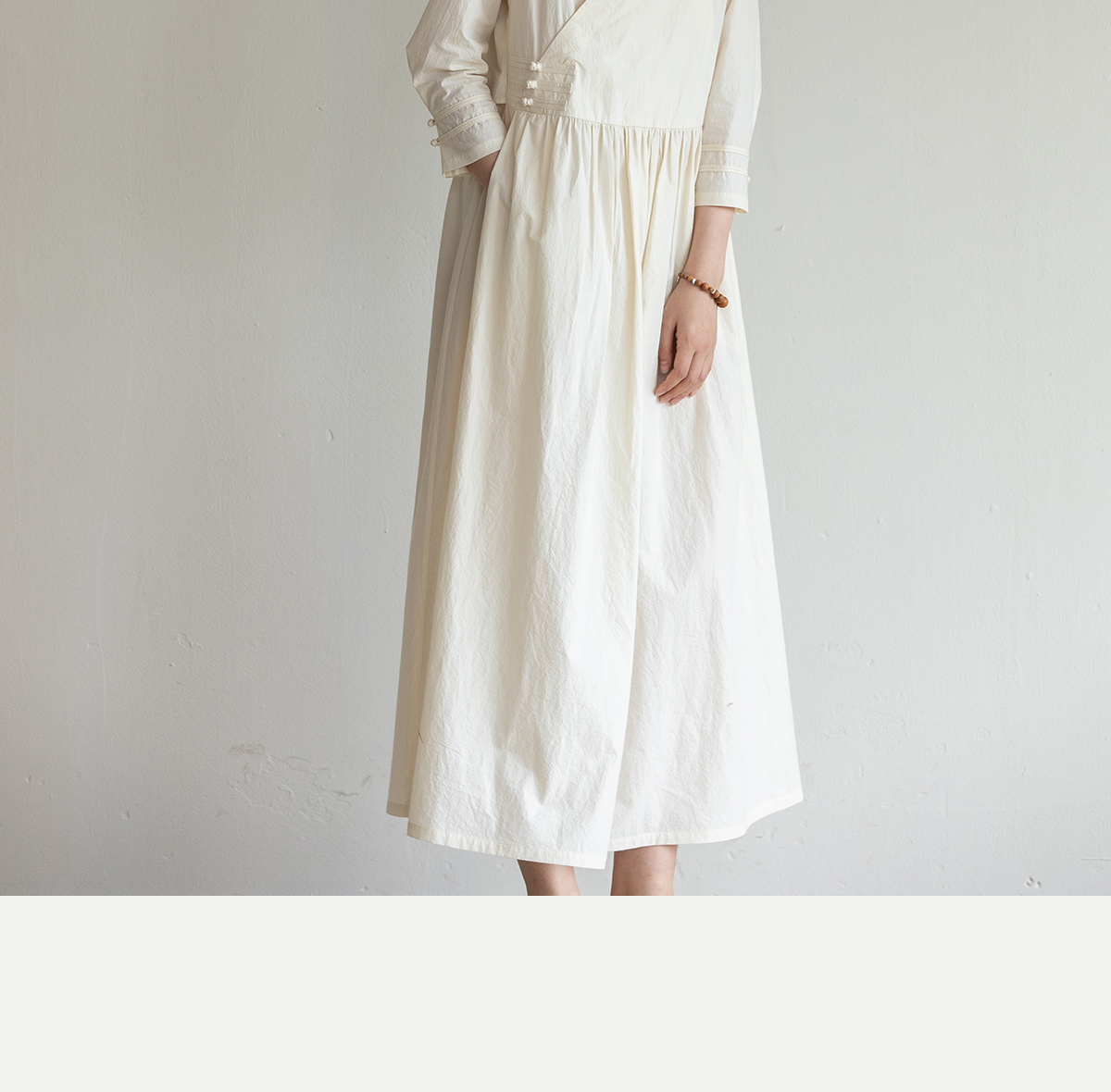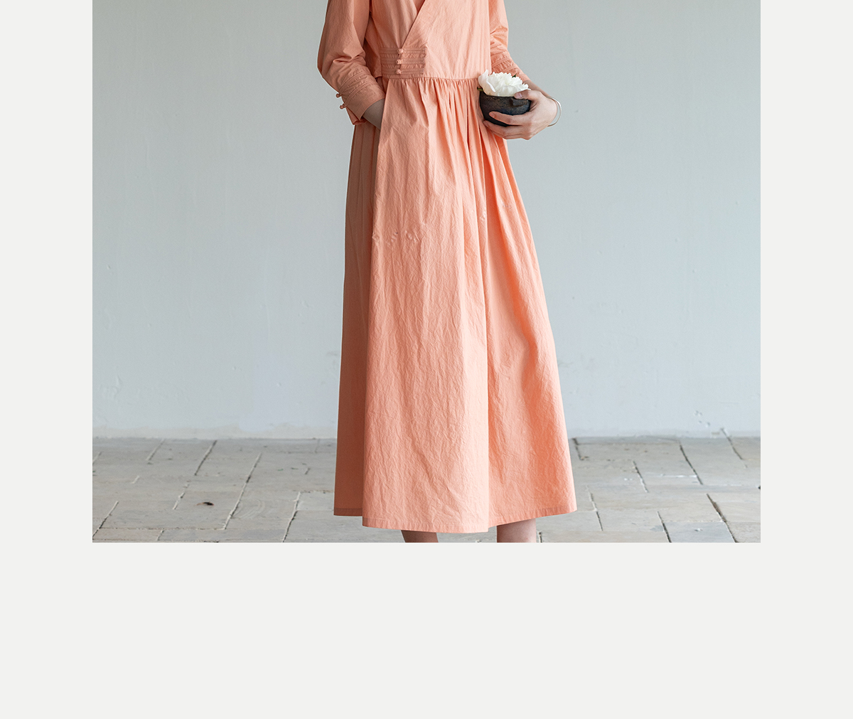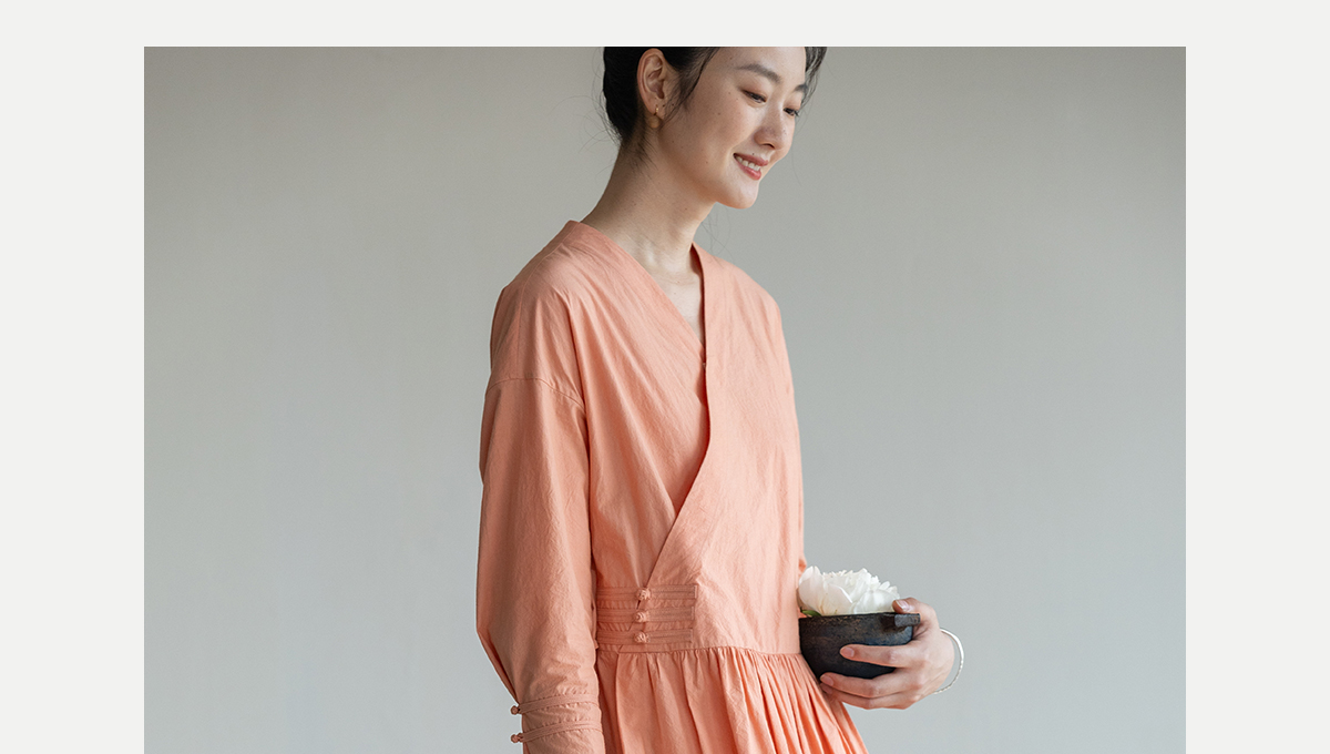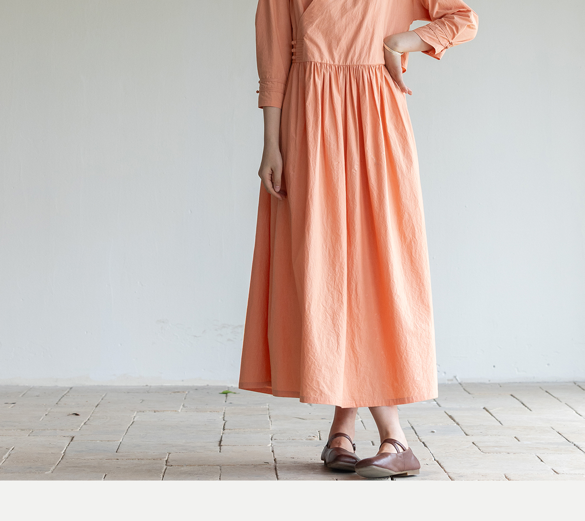 牧衣游原创 60支纯棉净色连衣裙新款质朴禅意复古宽松长裙 月牙弯