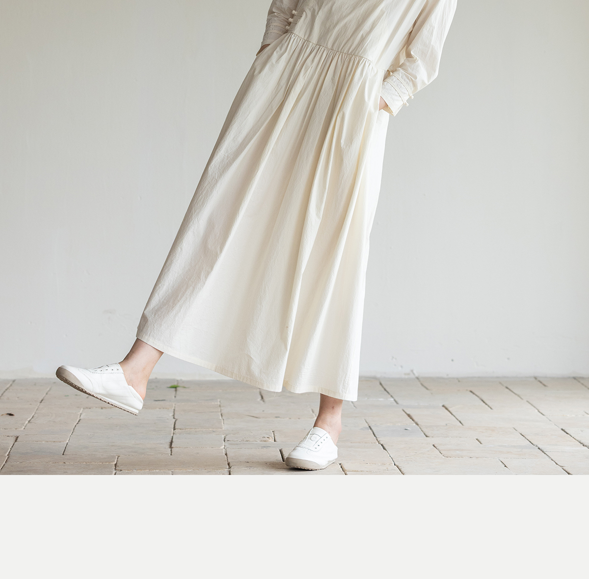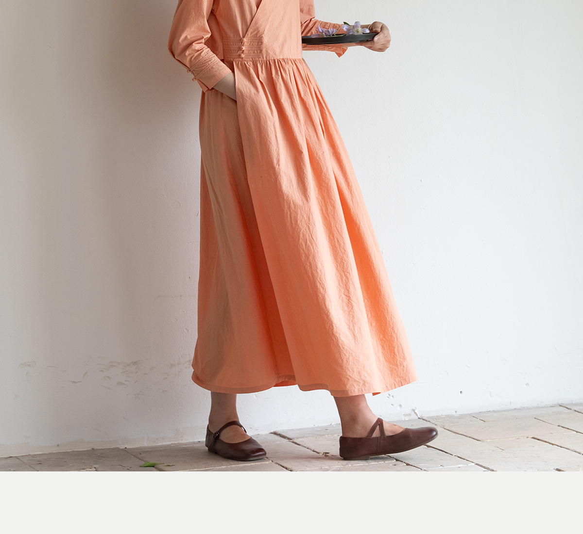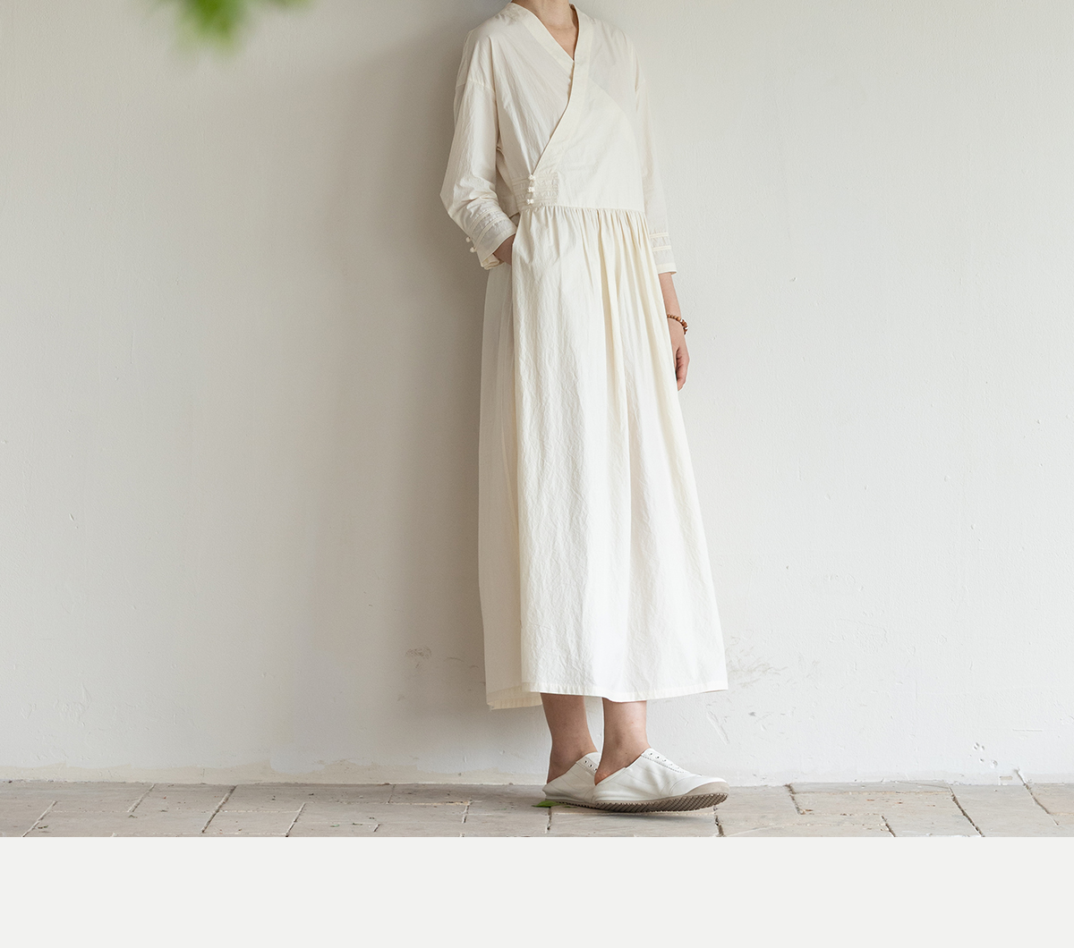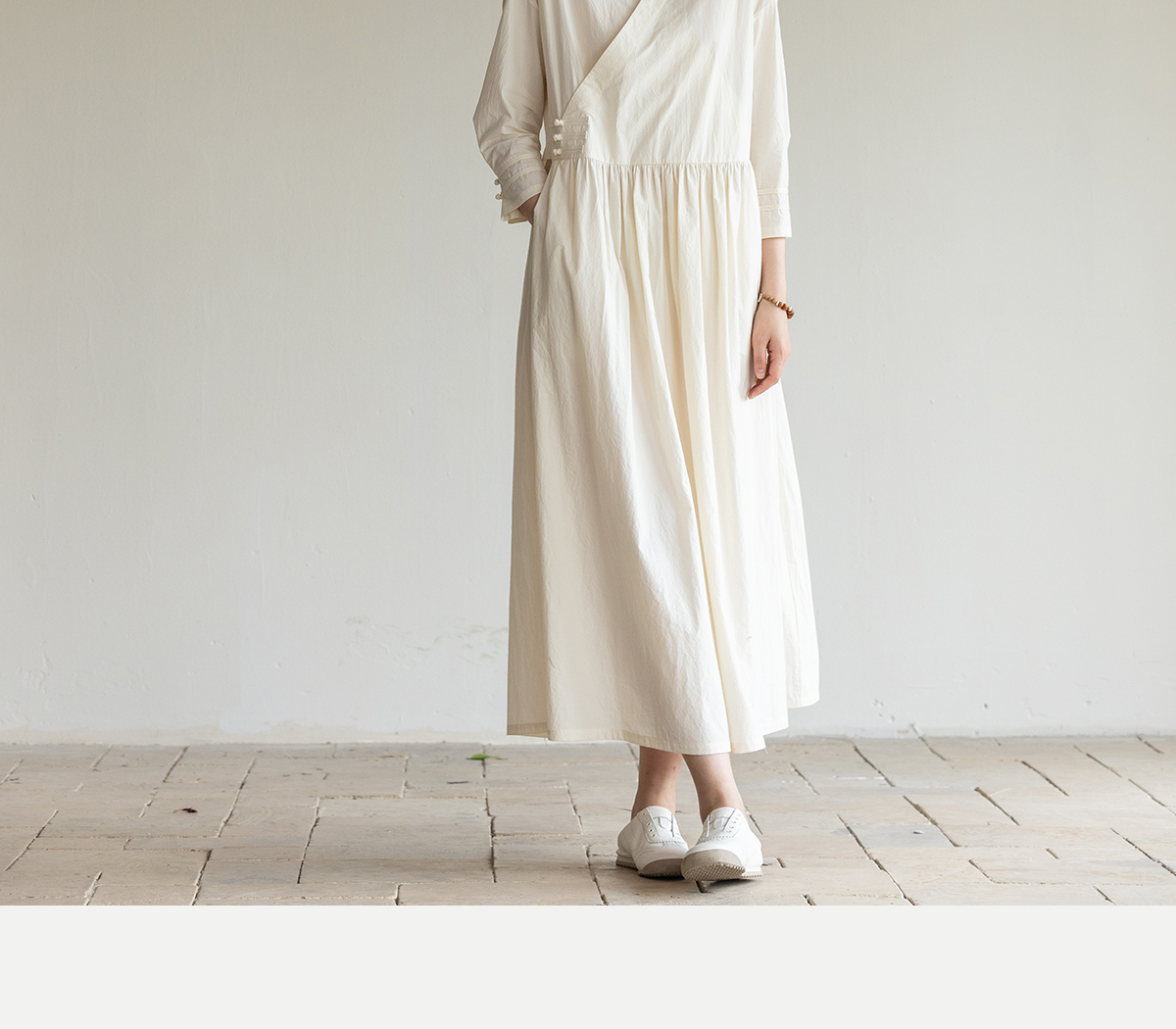 牧衣游原创 60支纯棉净色连衣裙新款质朴禅意复古宽松长裙 月牙弯