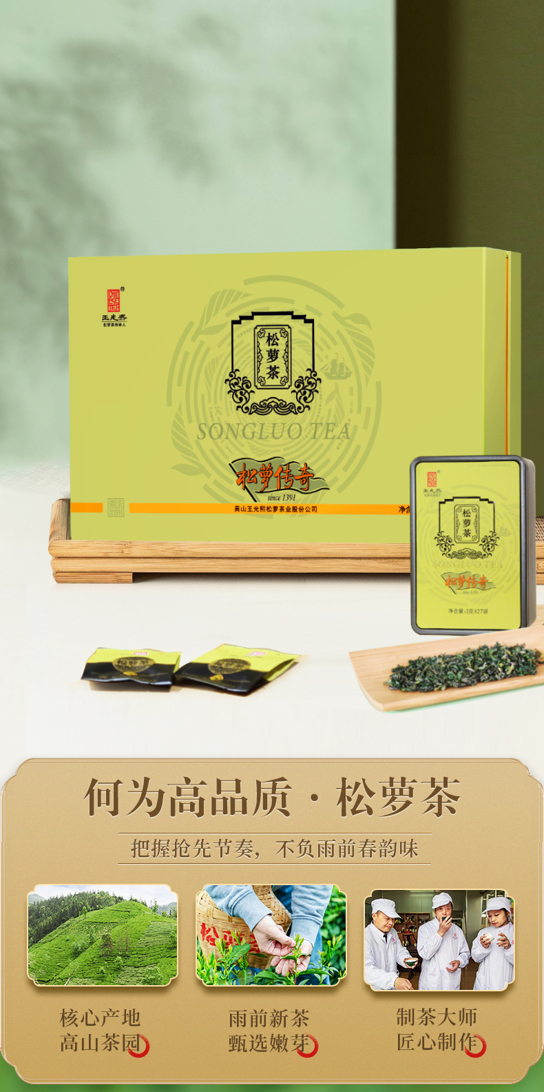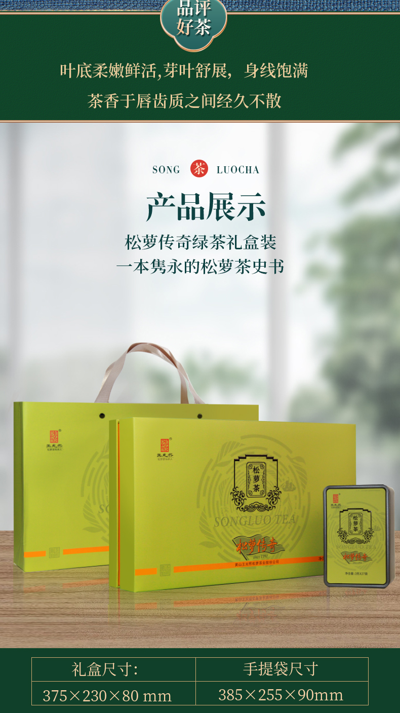 王光熙松萝茶一级优选雨前绿茶礼盒243g送礼自饮佳品