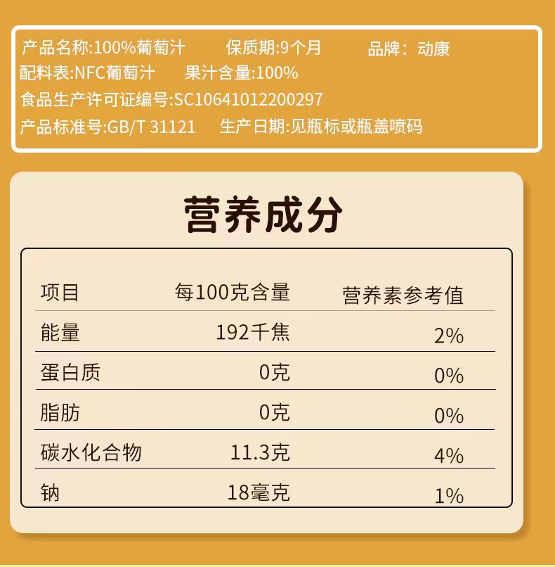 NFC100%纯果汁 葡萄汁 325ml
