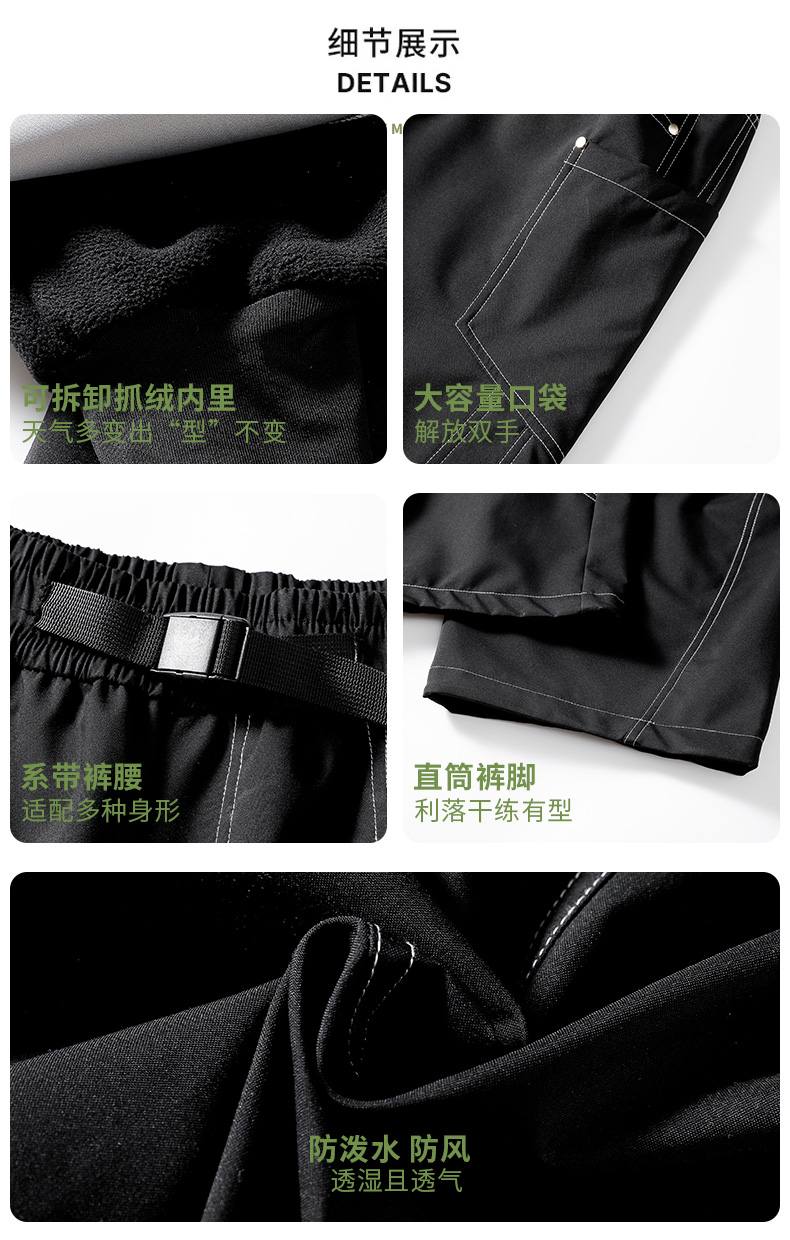 LUCKY DEER/幸运鹿情侣款轻户外山系特氟龙三防保暖抓绒脱卸裤