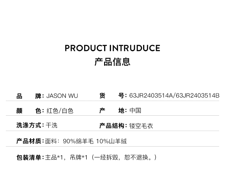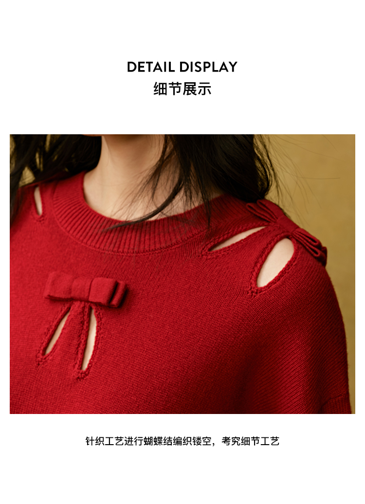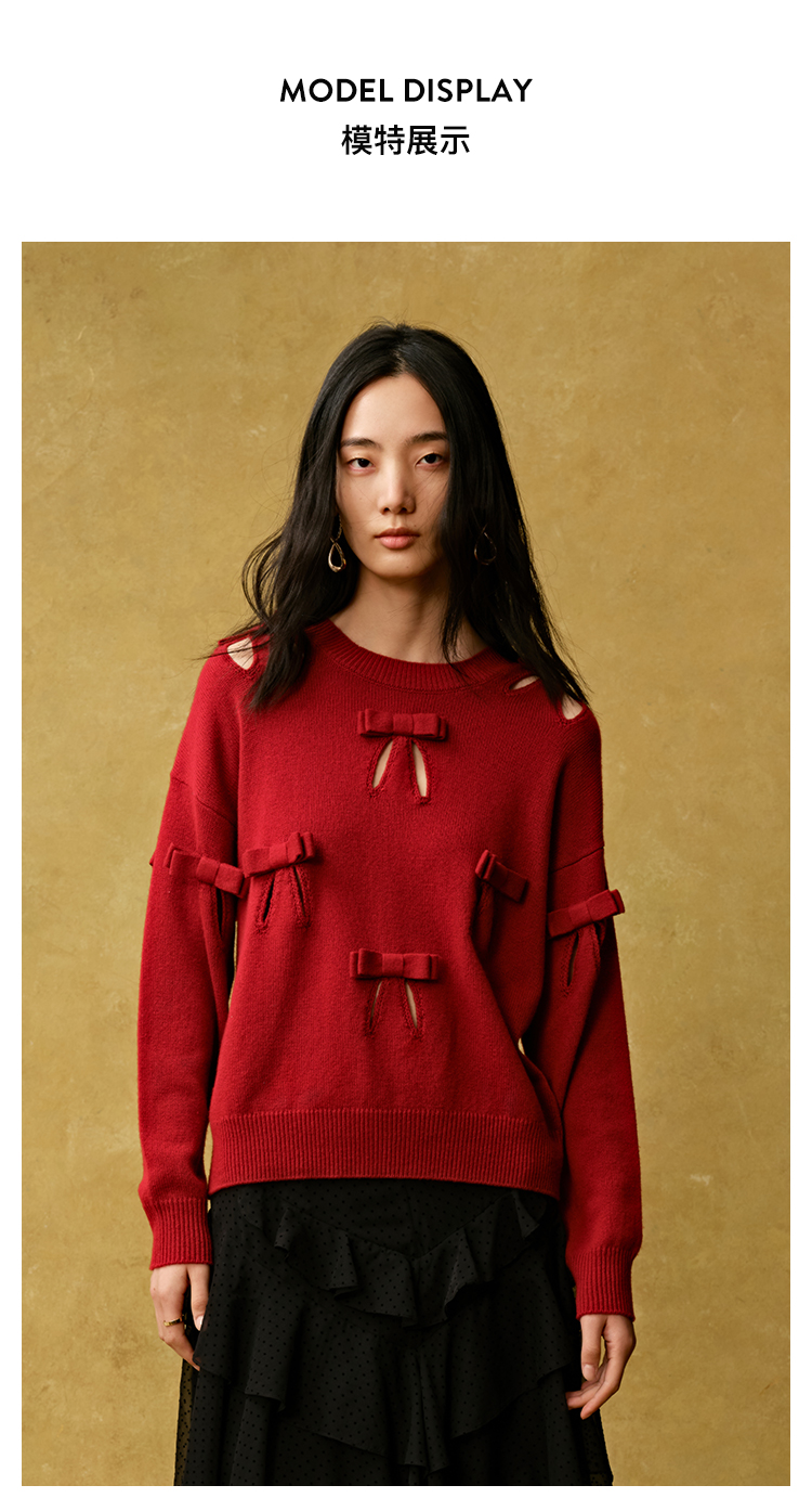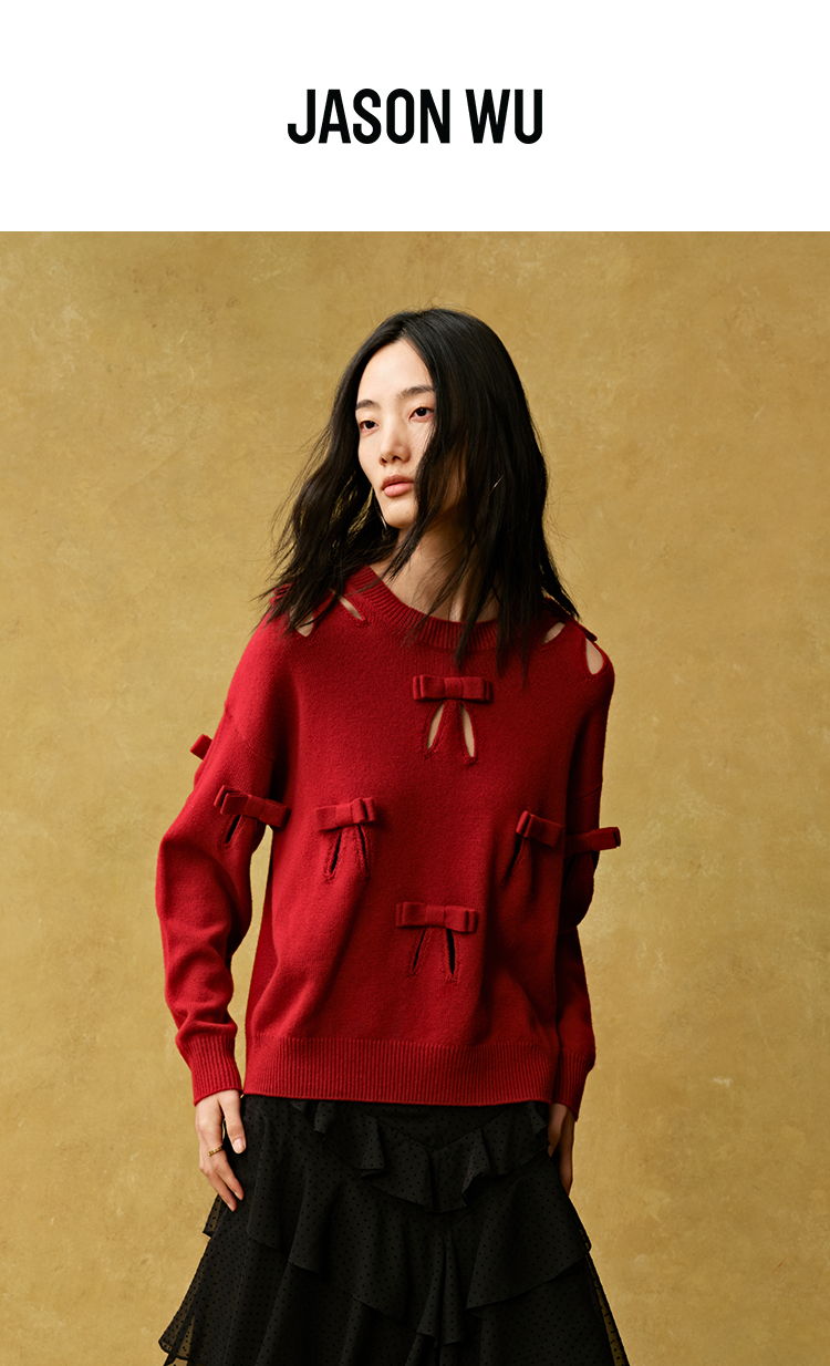 (张婧仪同款)【JASON WU】秋季新款蝴蝶结镂空羊绒上衣针织衫女