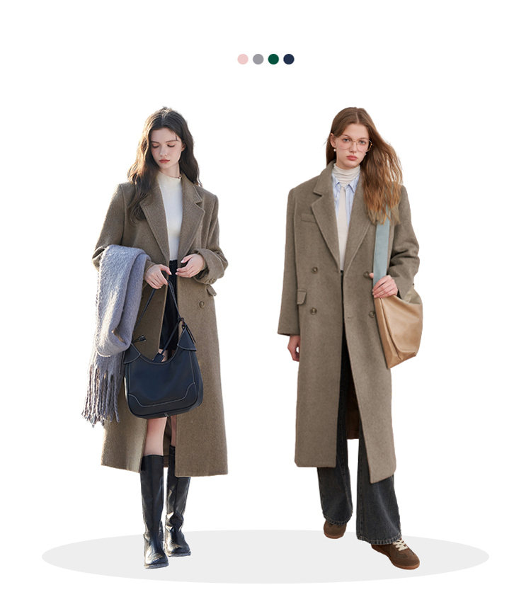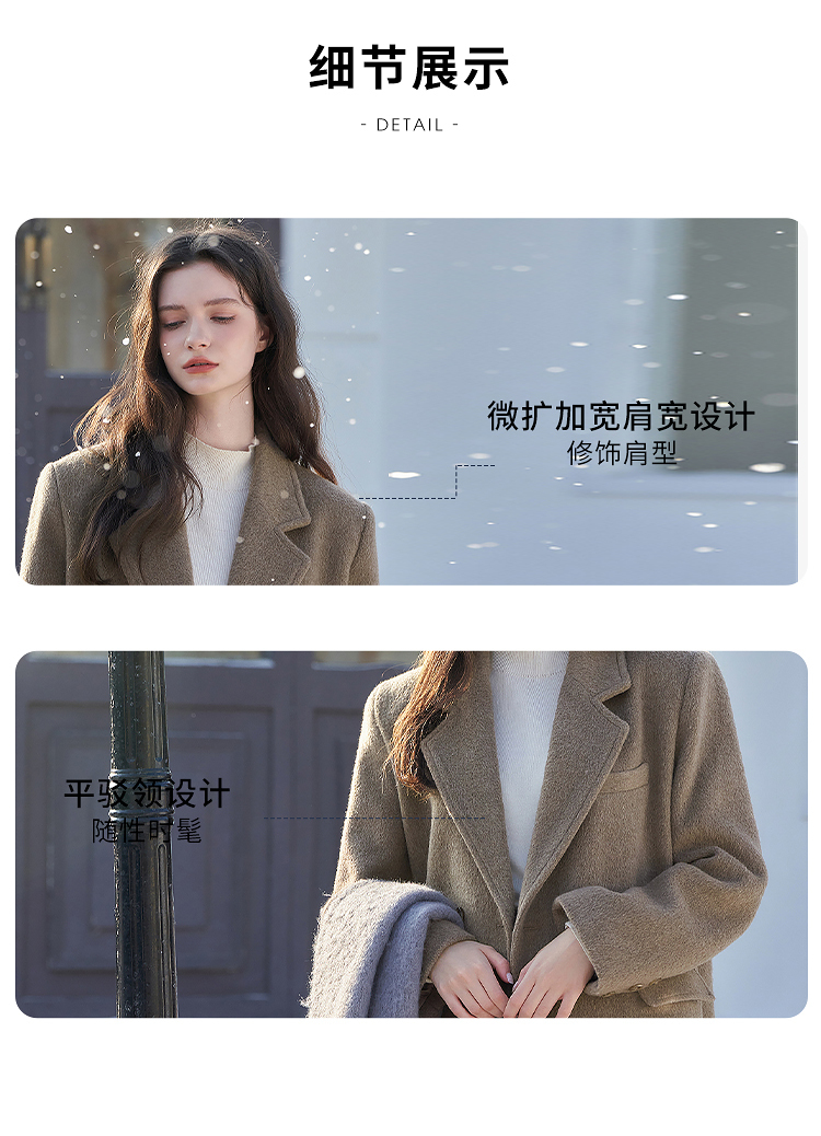 复古经典羊毛单面呢大衣女秋冬新款简约干练宽松气质外套V2338925