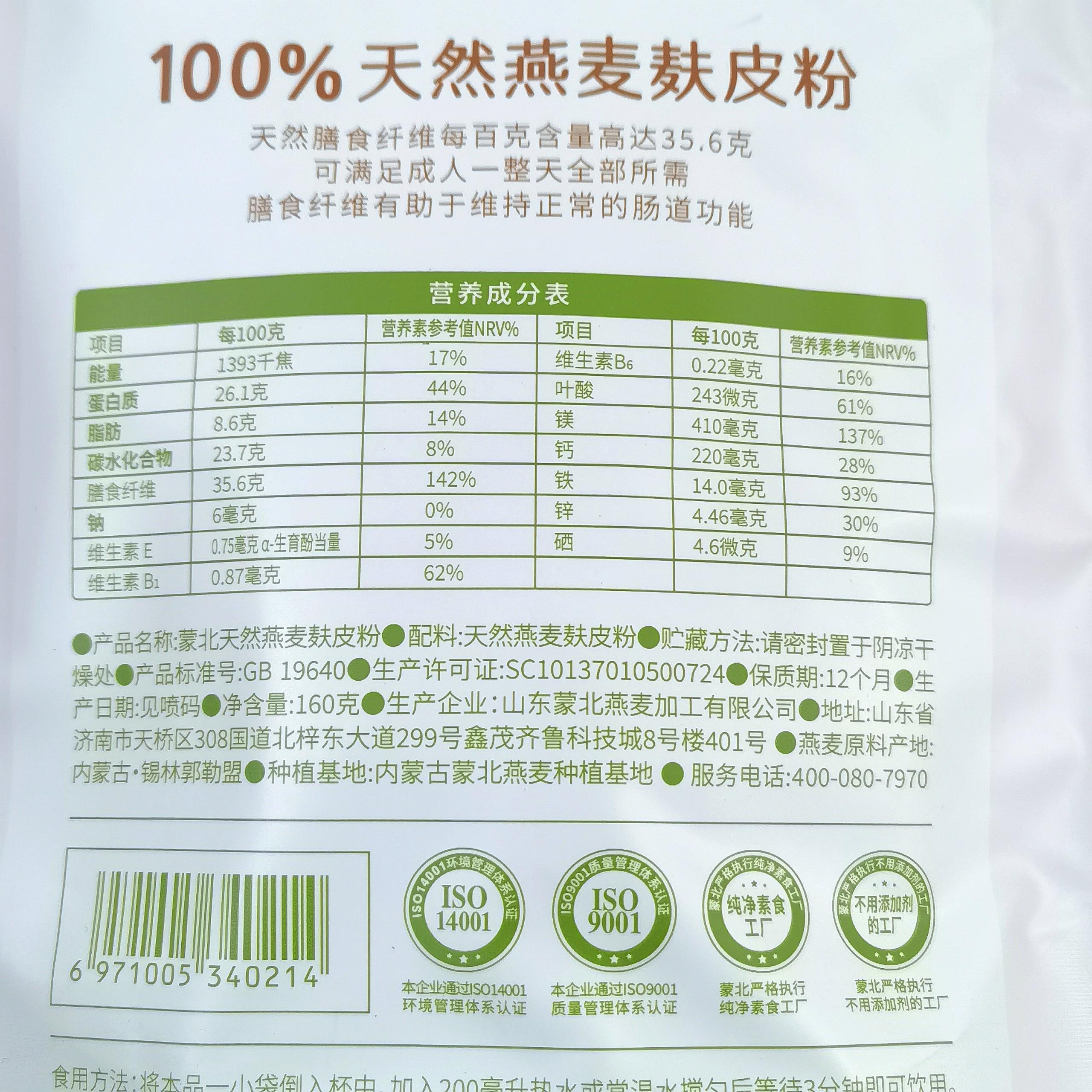 蒙北天然燕麦麸皮 冲饮饱腹营养代餐独立小包装160g/袋(20小包*8g)【京东快递送货上门】