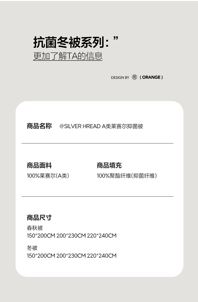 自然醒 SILVER HREAD A类莱赛尔抑菌被100天丝单人春秋被子双人加厚保暖冬季被芯母婴级LFS