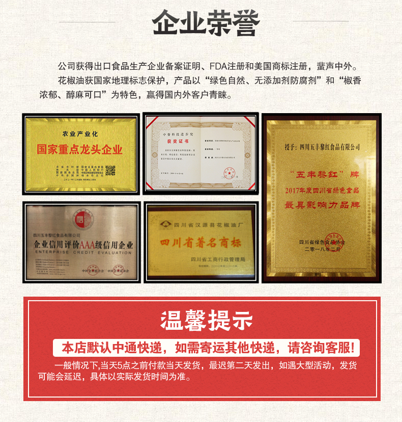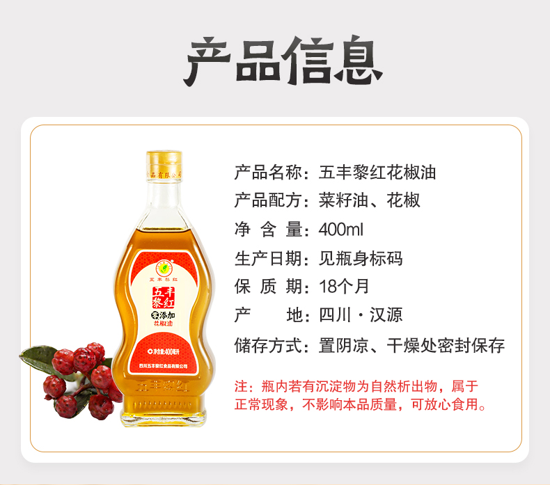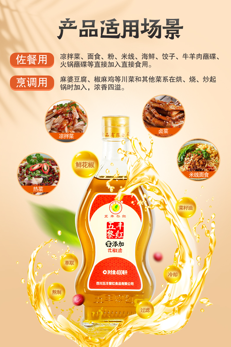 五丰黎红花椒油400ml装凉拌专用四川麻油正宗花椒油CSJLY
