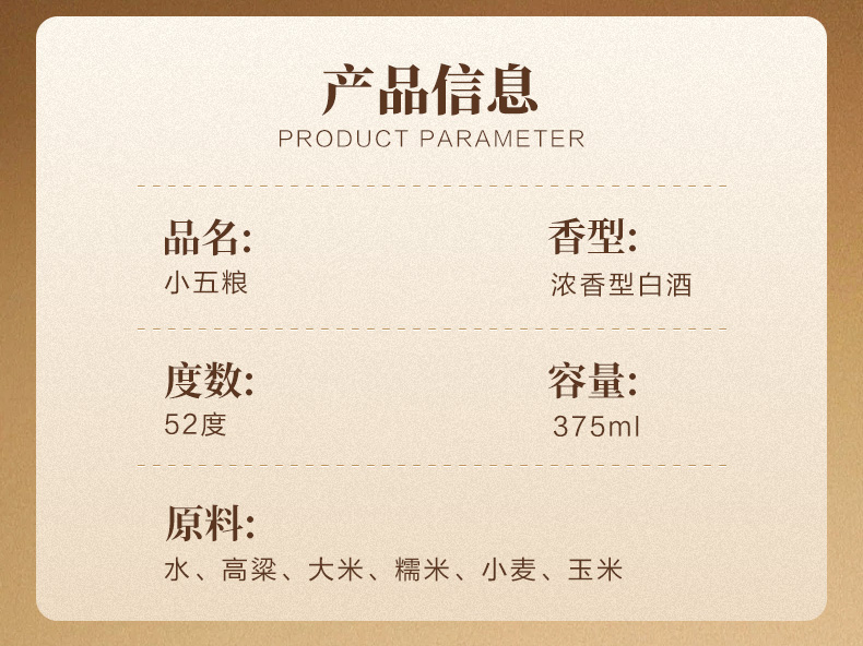 五粮液小五粮 52度浓香型白酒 整箱375ml*6瓶包邮