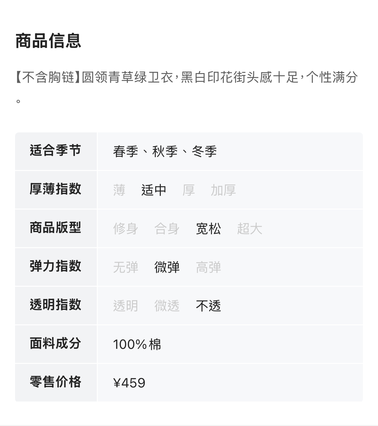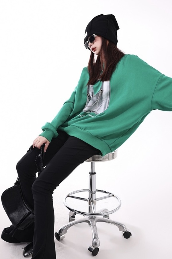 WHO KNOWS 绿色印花潮酷卫衣 17182【不含胸链】