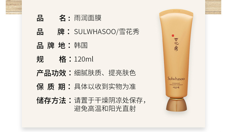 韩国 Sulwhasoo雪花秀 雨润夜间修复面膜 120ml