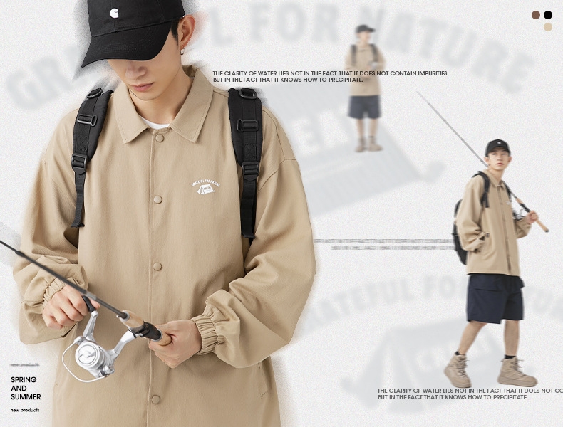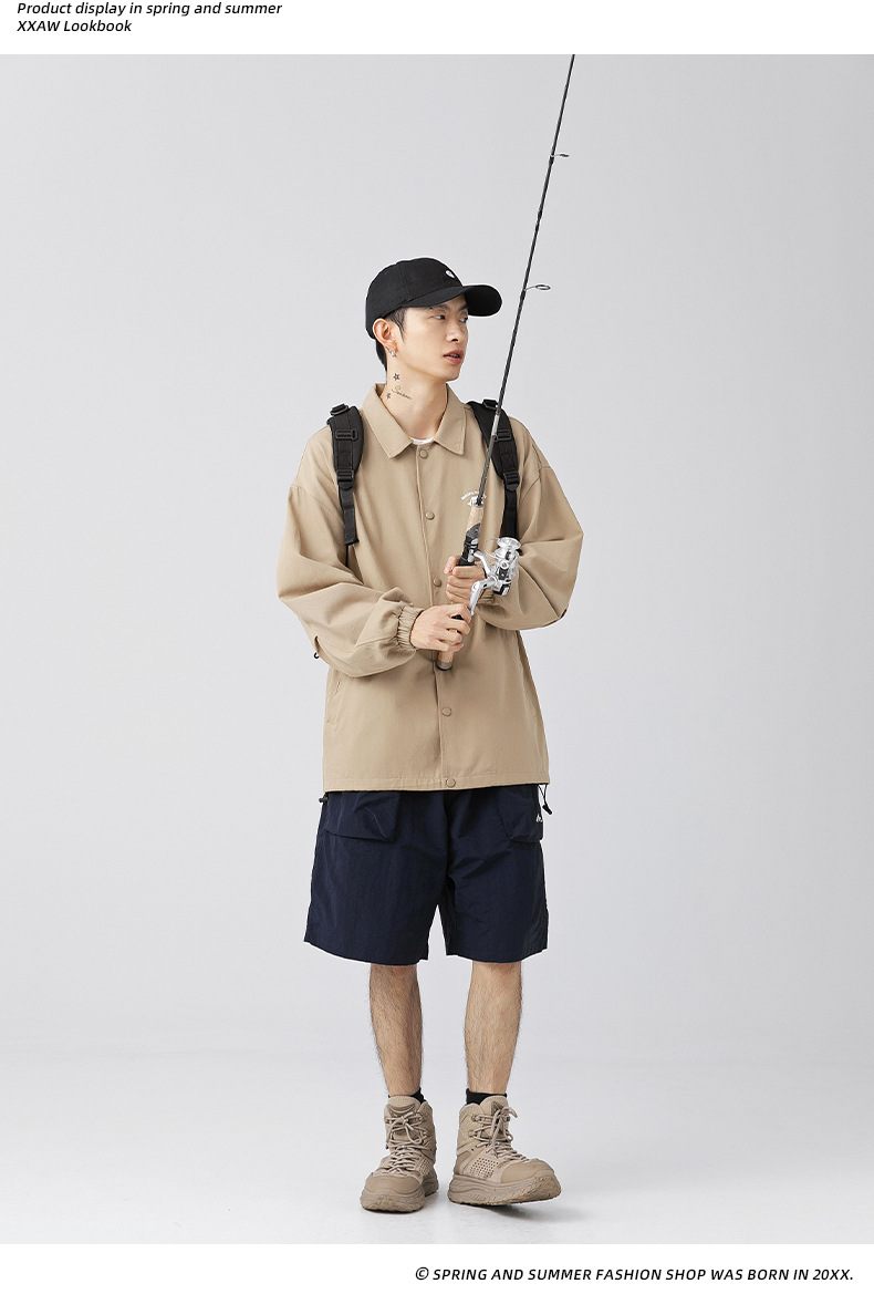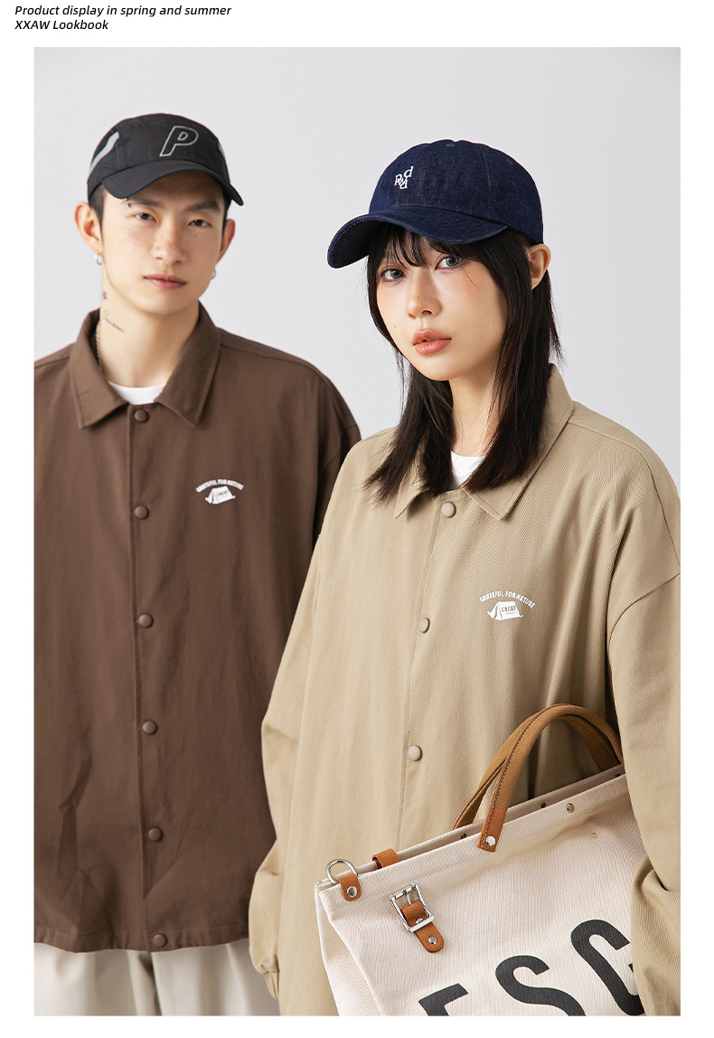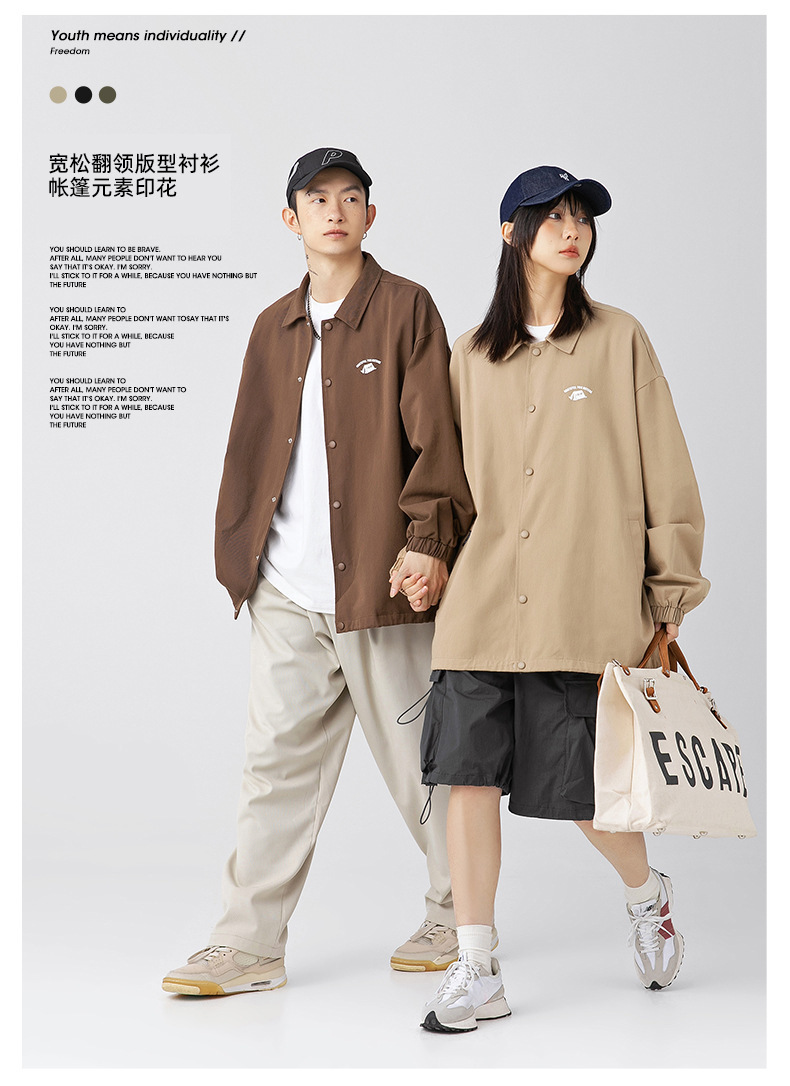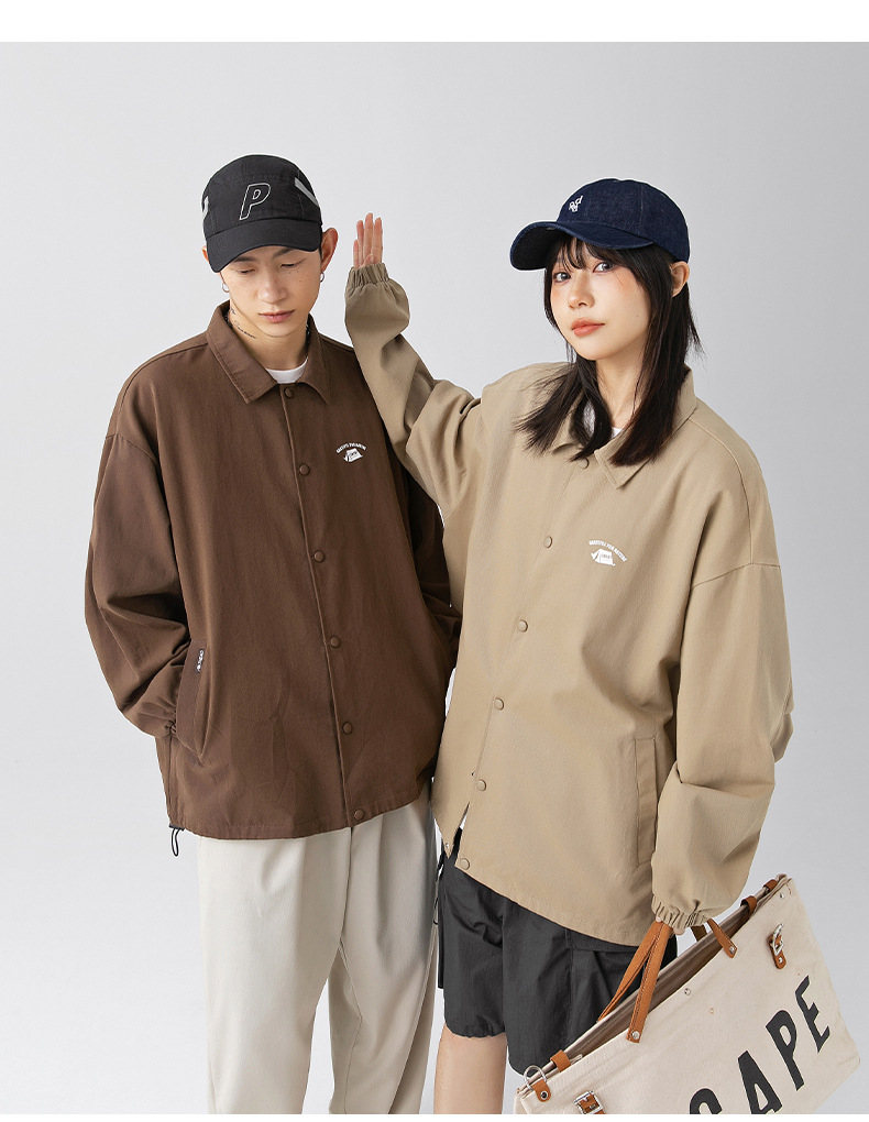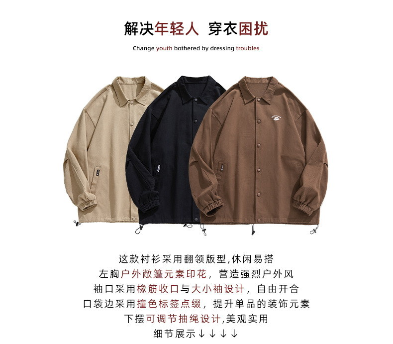 「三款配色」韩路日系男装 潮牌教练夹克男春季款纯棉情侣户外印花工装外套上衣