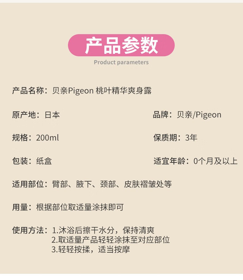 【海豚美购】日本Pigeon贝亲新生婴儿桃叶精华爽身露 桃子水200ml