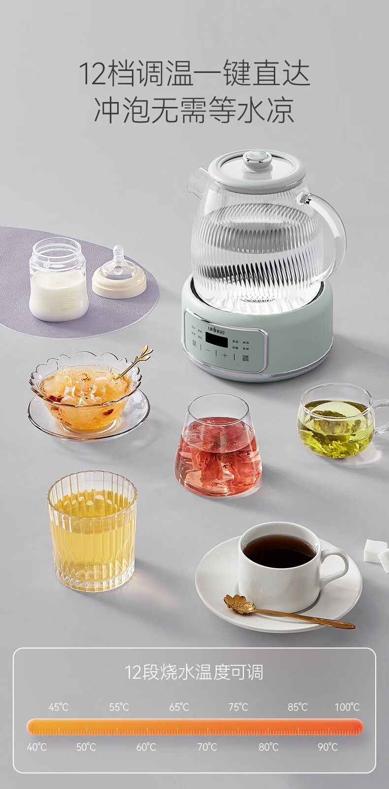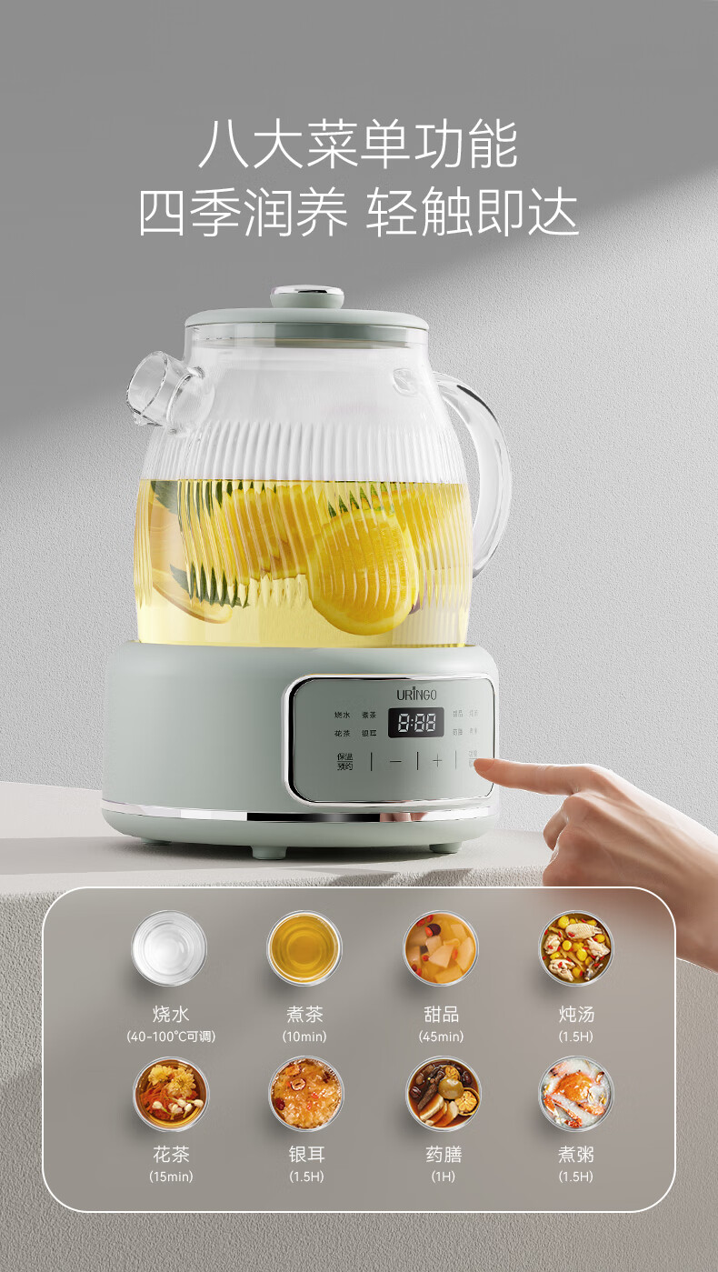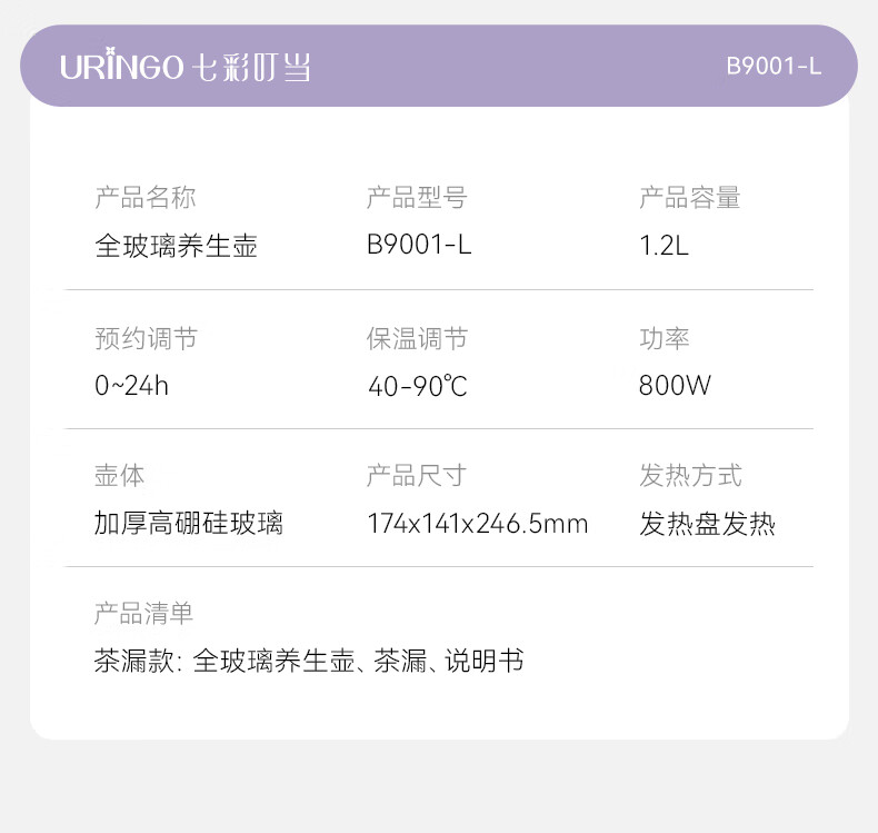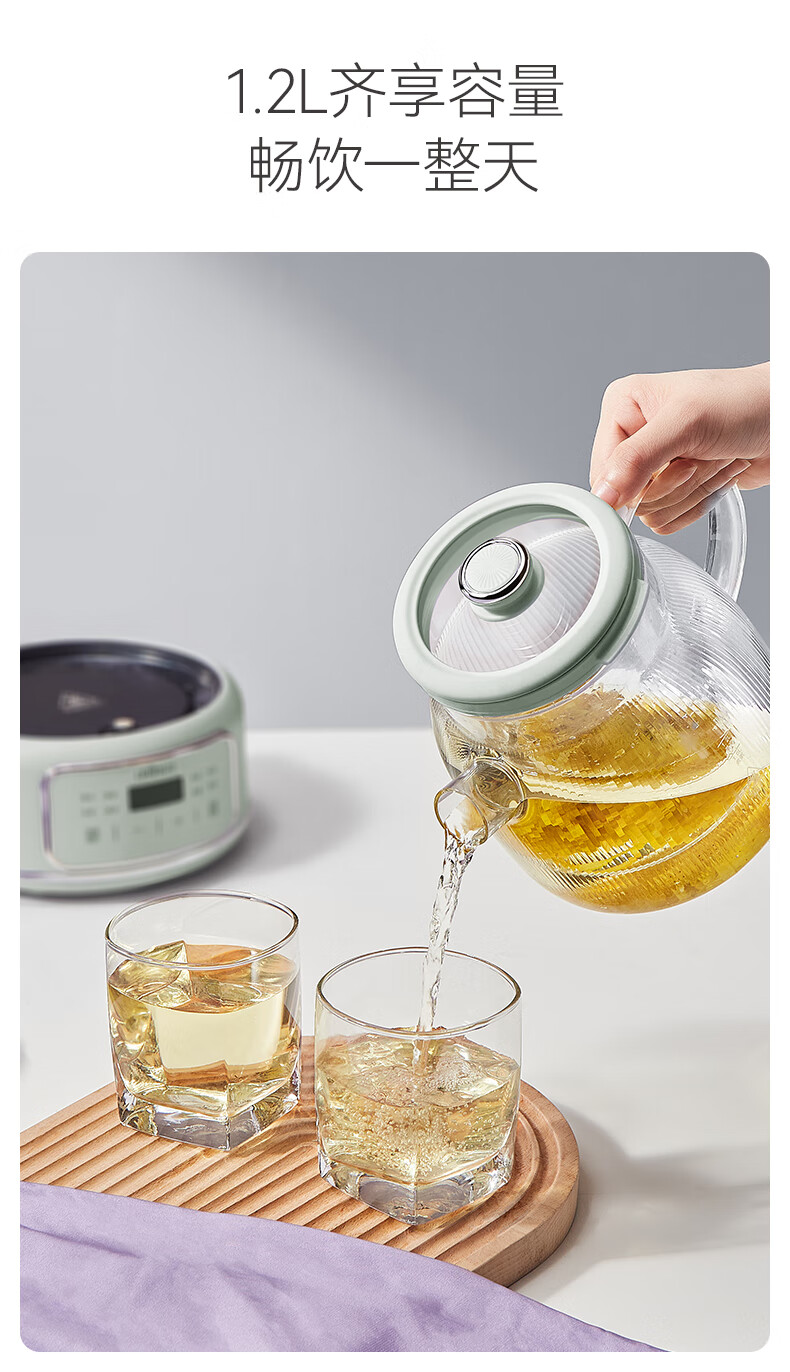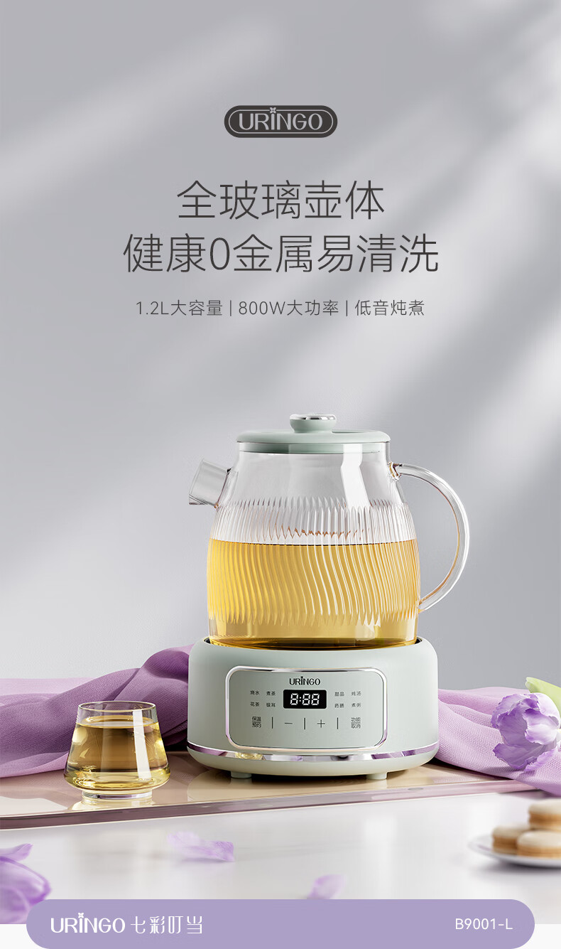 七彩叮当新款养生壶多功能家用小型办公室全玻璃煮茶器烧水花茶壶 B9001-L 滤网款 1.2L