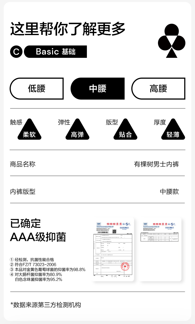 有棵树锦纶冰丝男士纯棉裆四角裤3条装-S146