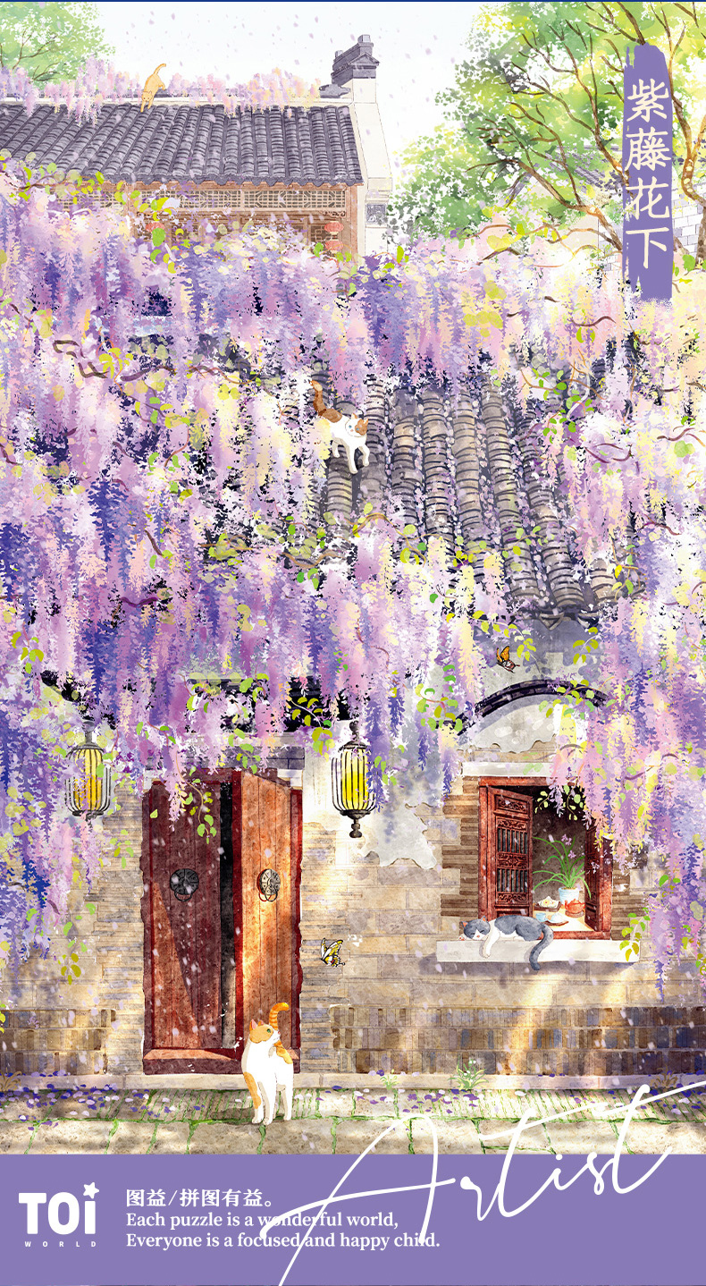 TOi图益-潮玩拼图抬头看树系列-紫藤花下-1000片-分包款