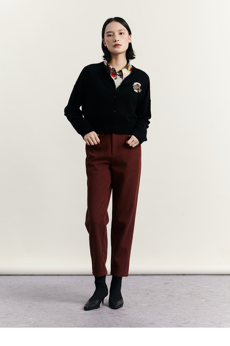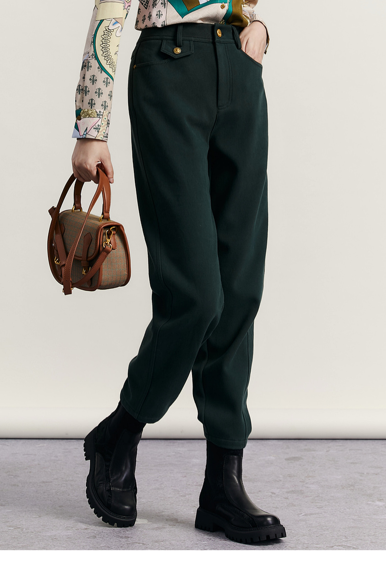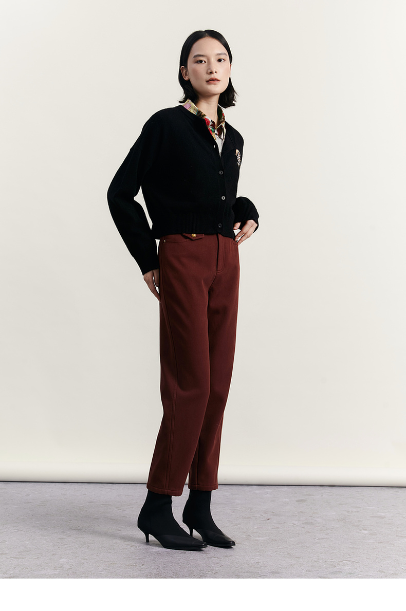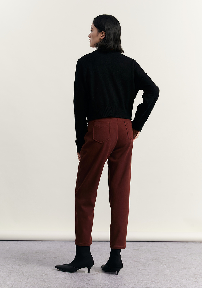 谜底磨毛休闲裤女2023冬款简约时尚高腰百搭直筒九分裤234MK1501