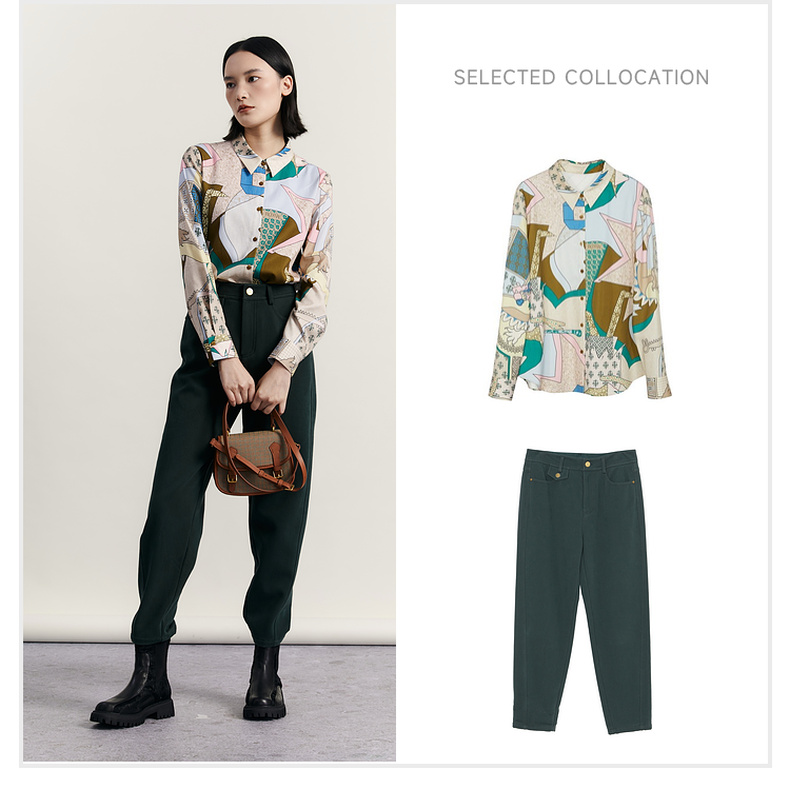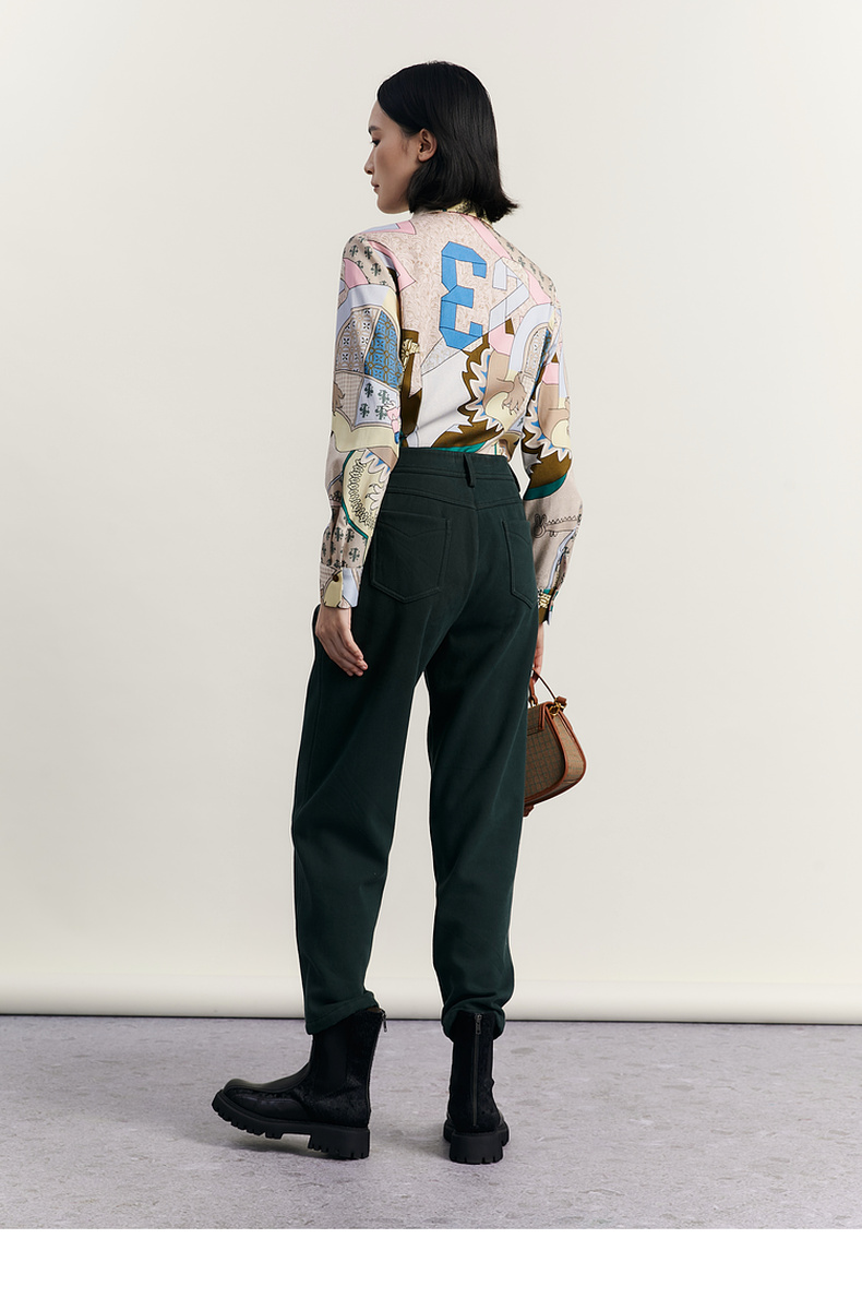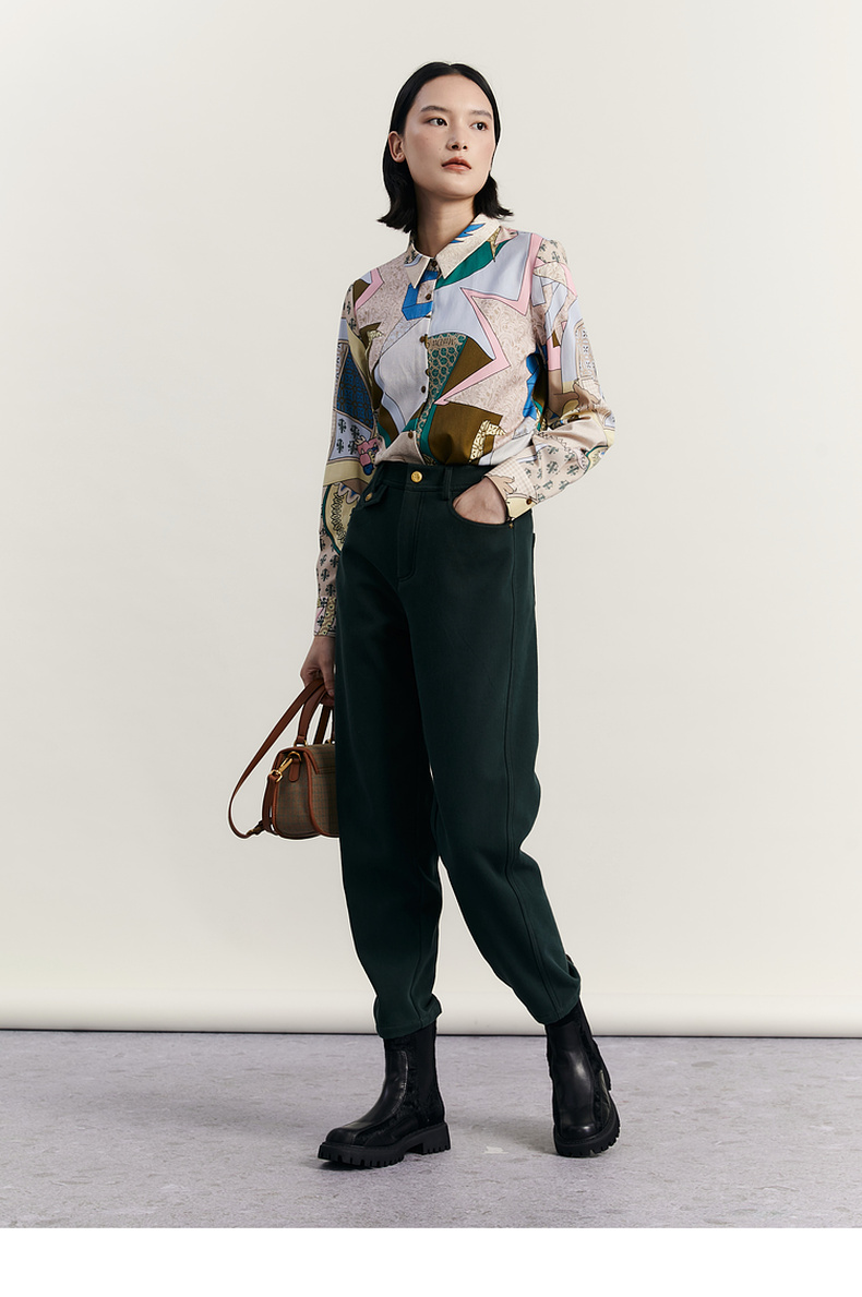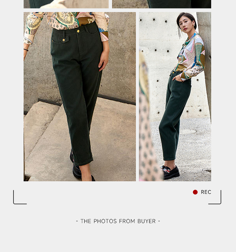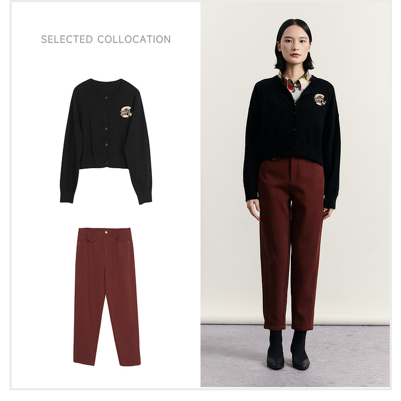 谜底磨毛休闲裤女2023冬款简约时尚高腰百搭直筒九分裤234MK1501