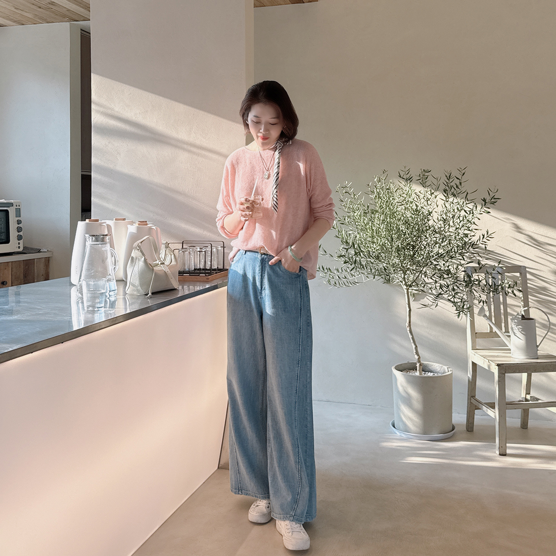 火桐hooton 亚麻牛仔直筒阔腿牛仔裤