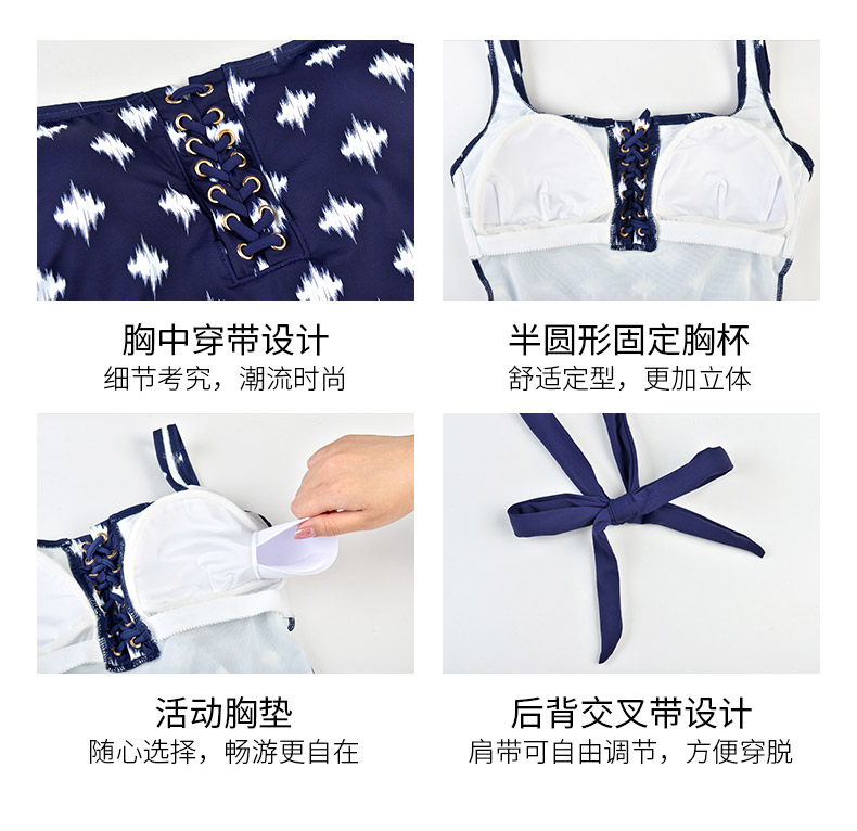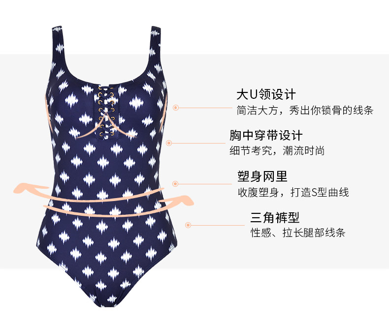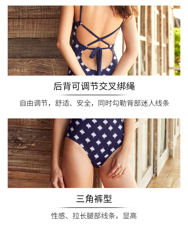 | 袖长: 无袖 | 款式: 三角连体泳衣 |