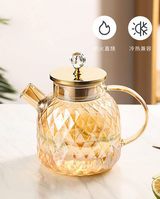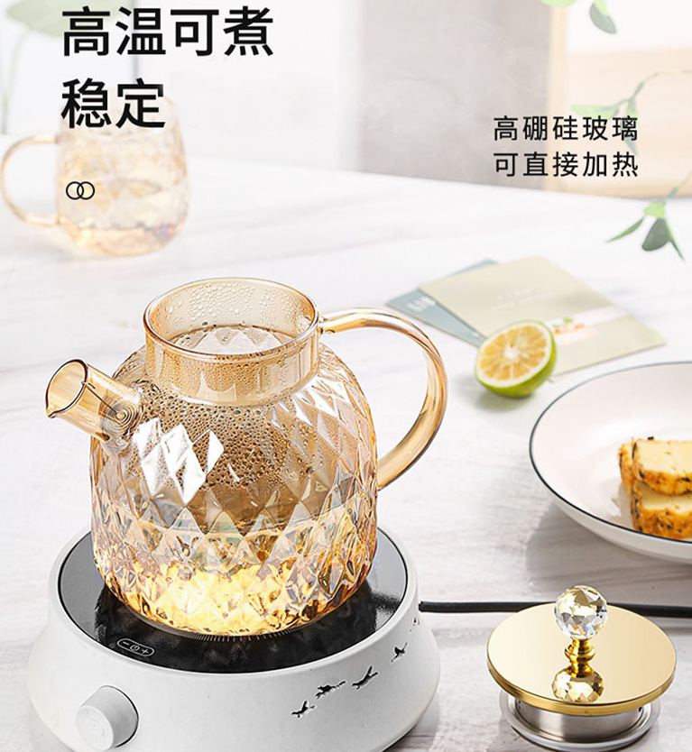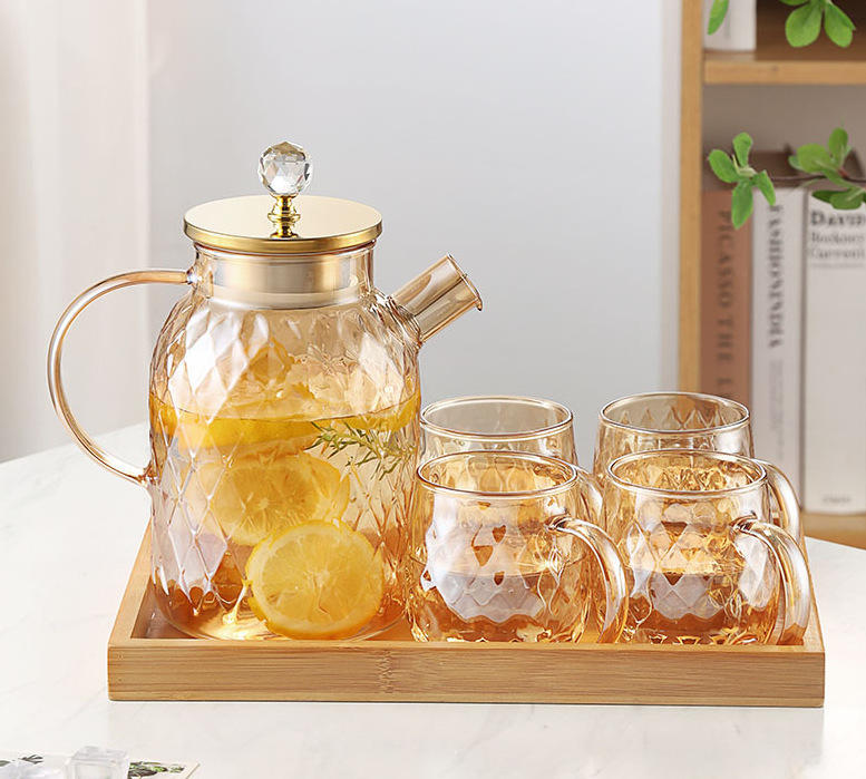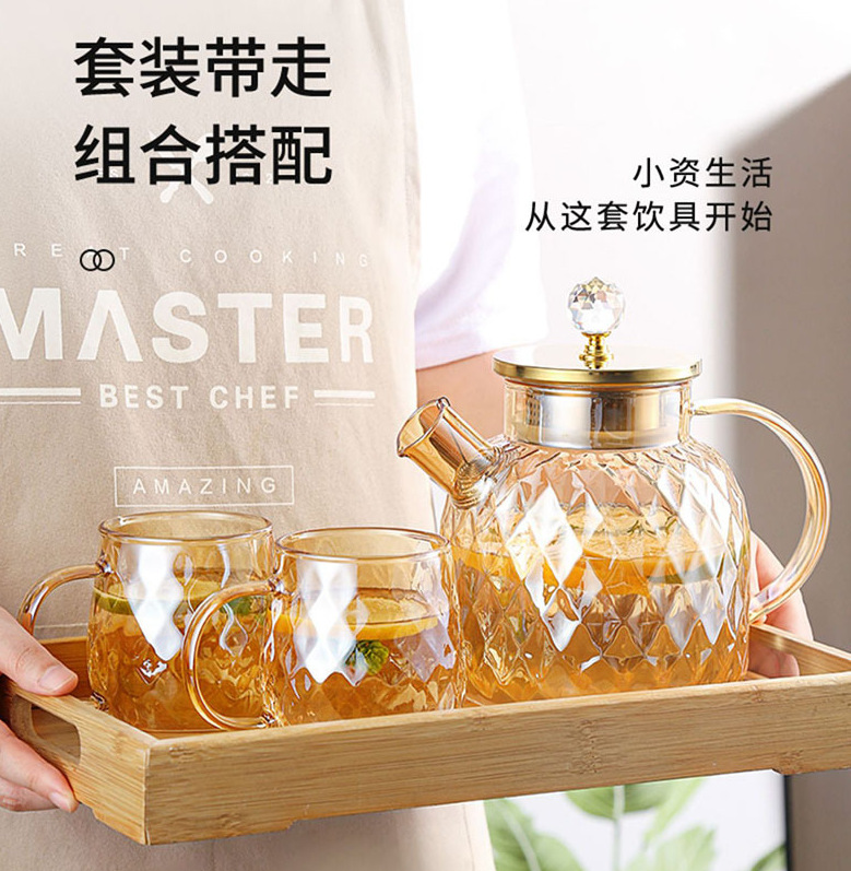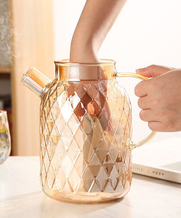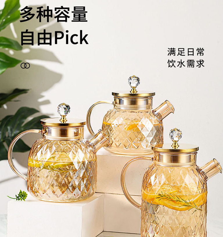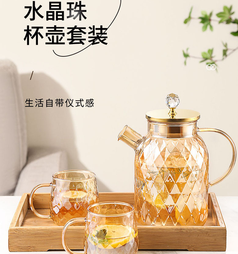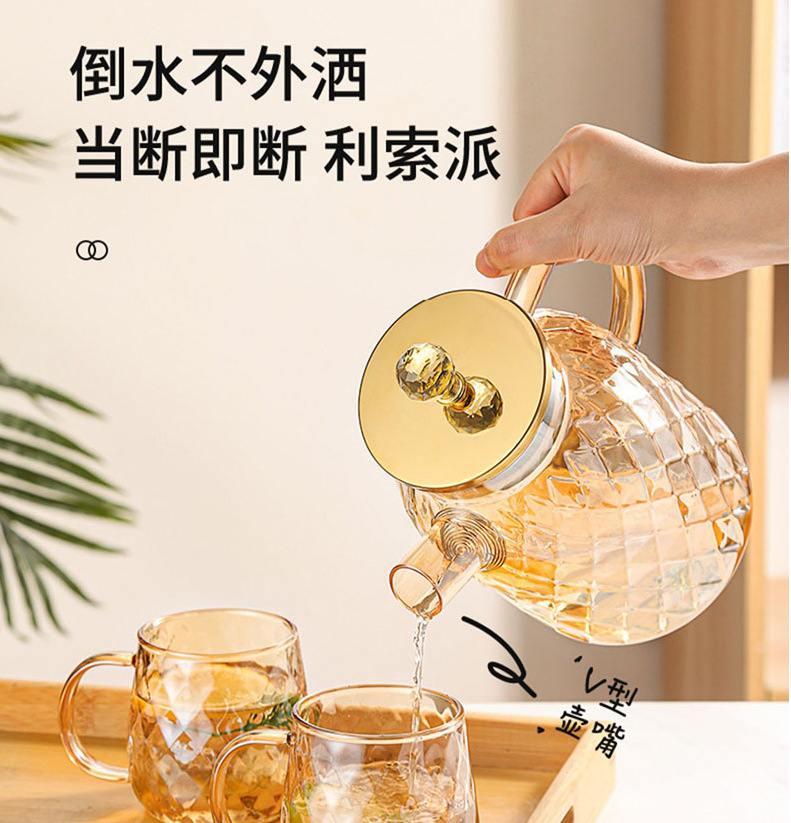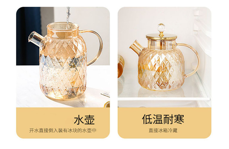 冷水壶泡茶壶家用大容量果汁扎壶高硼硅玻璃琥珀色兰陵凉水壶