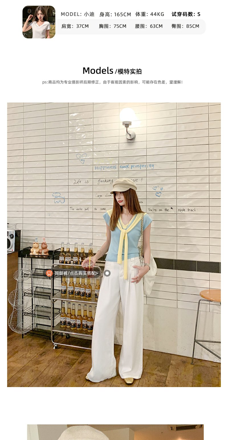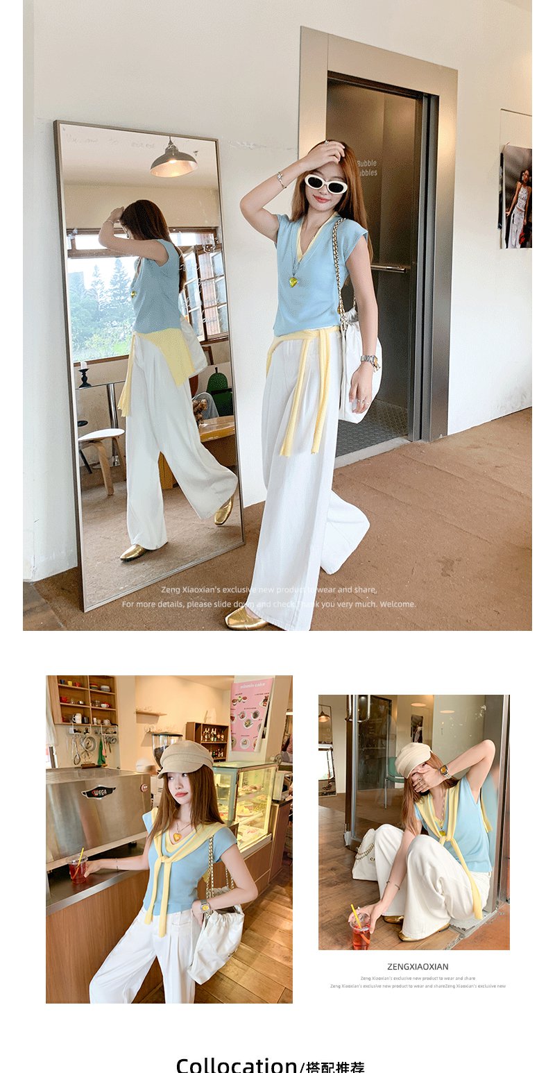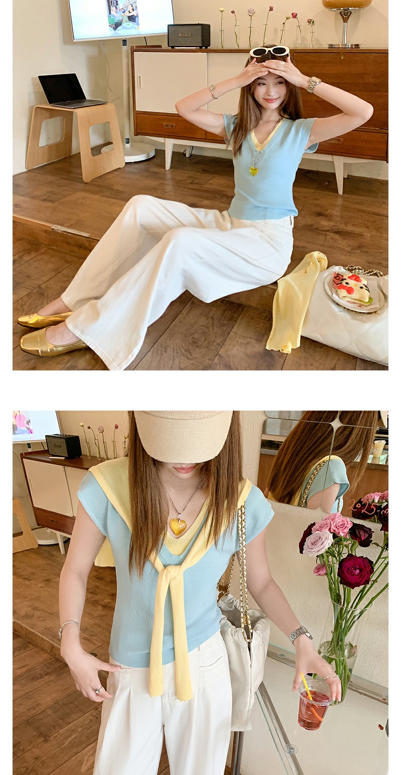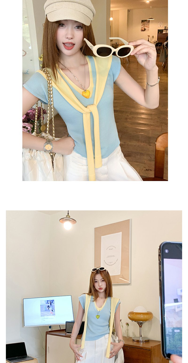 <曾小咸推荐>韩系撞色披肩绑带针织短袖T恤