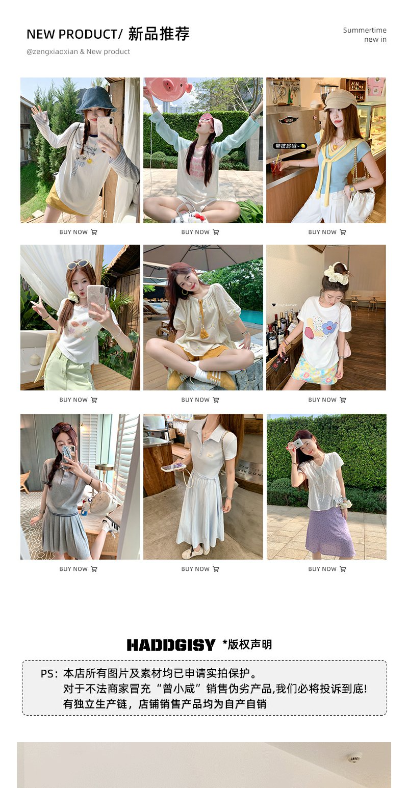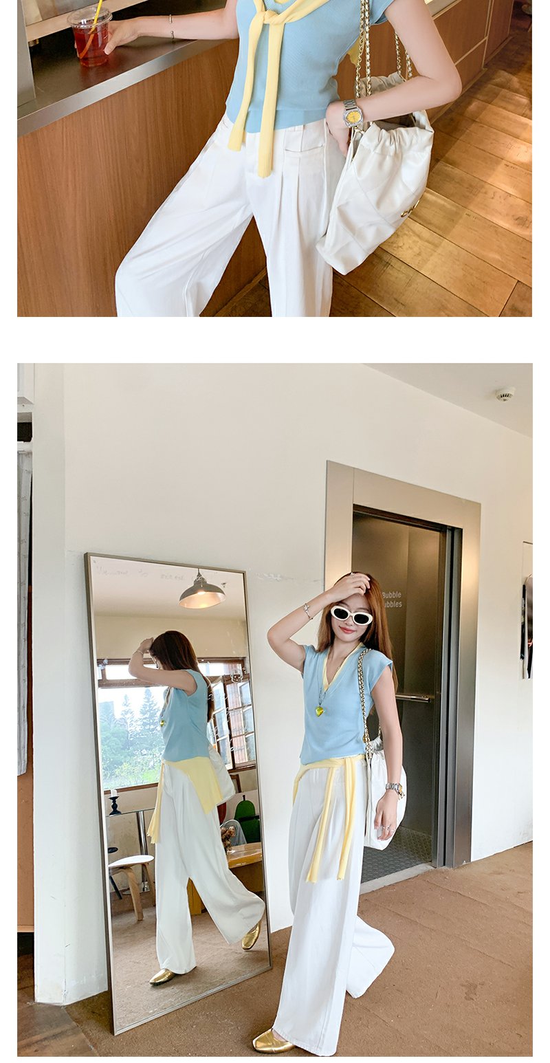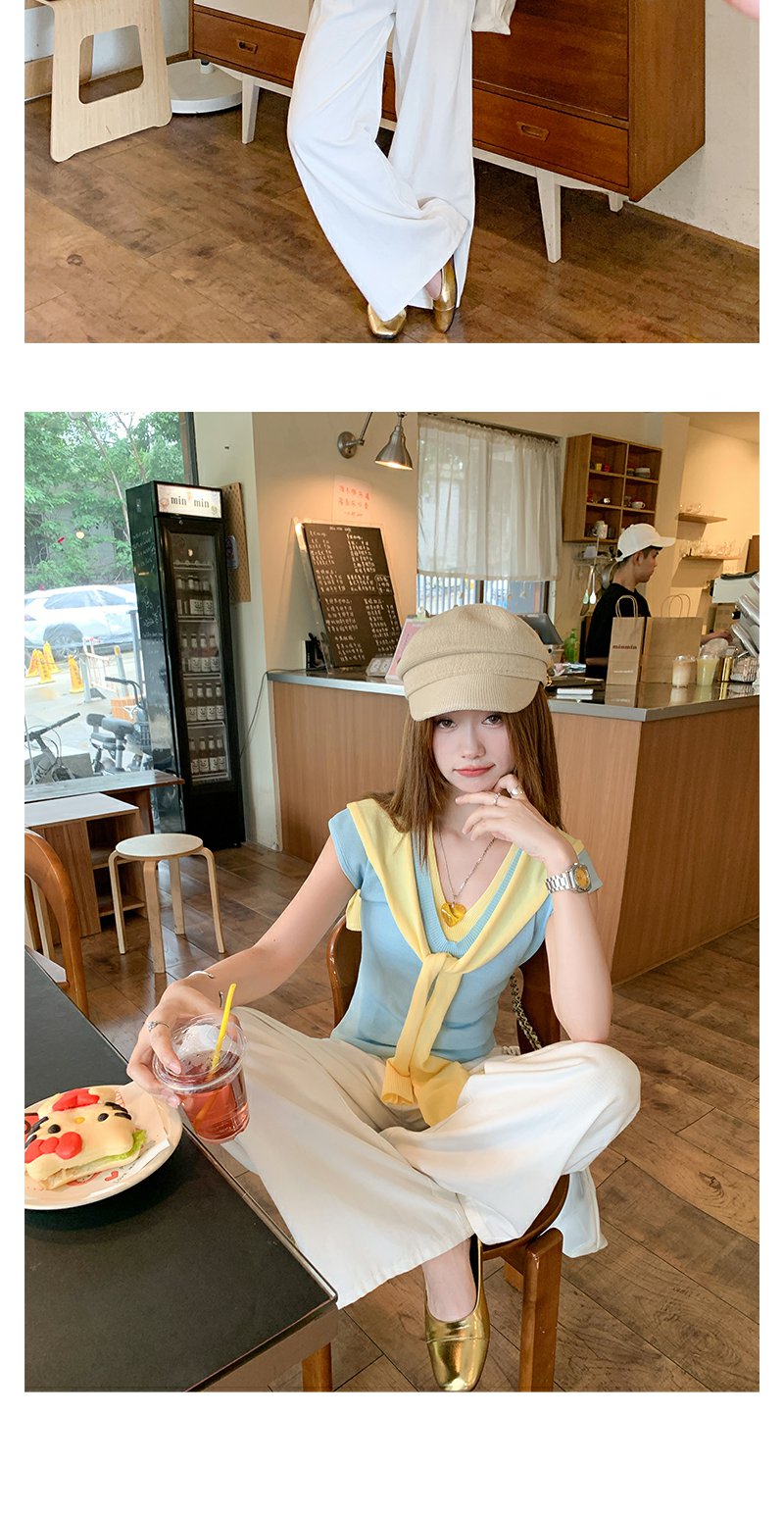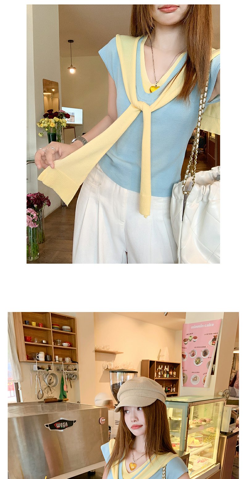 <曾小咸推荐>韩系撞色披肩绑带针织短袖T恤