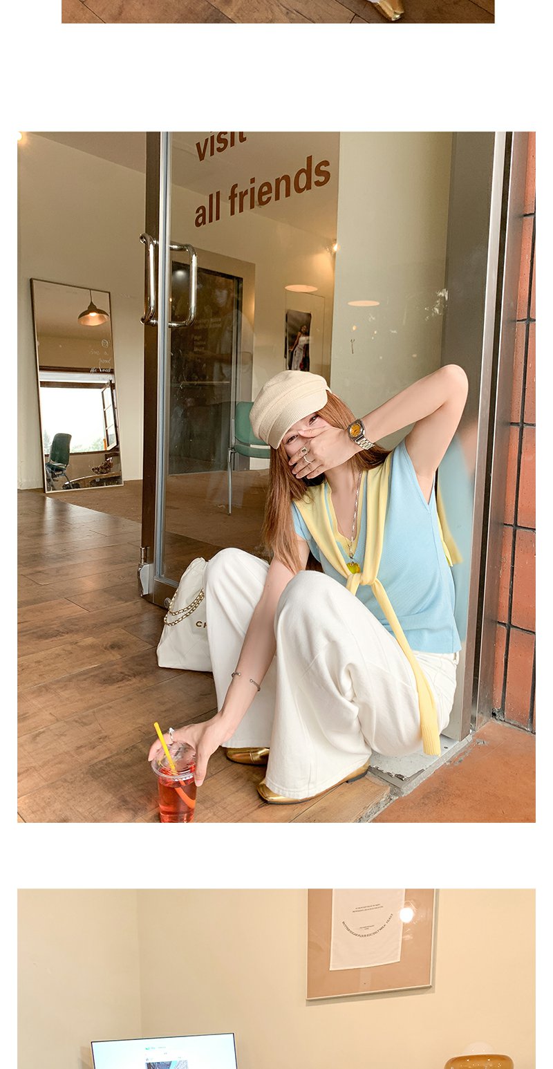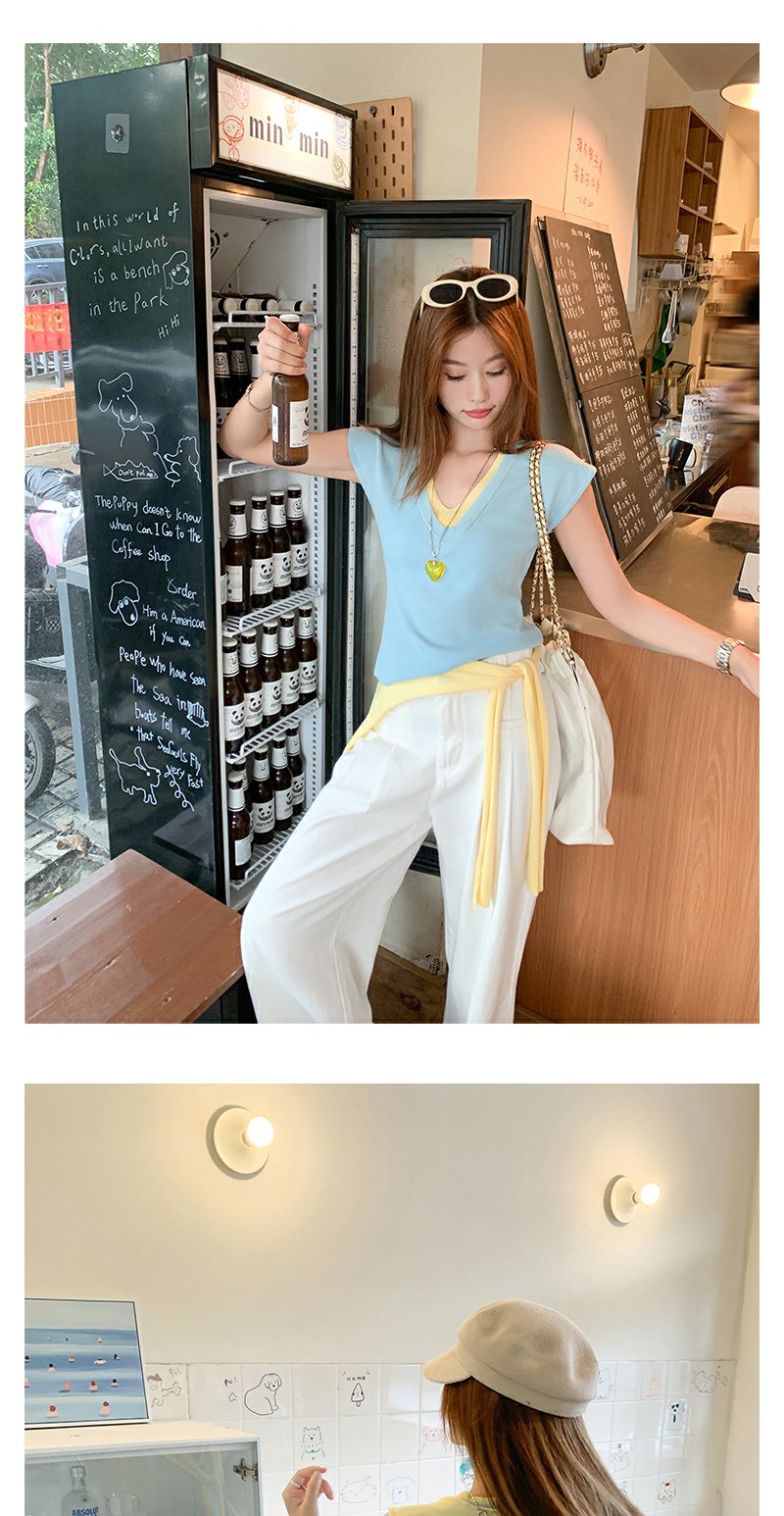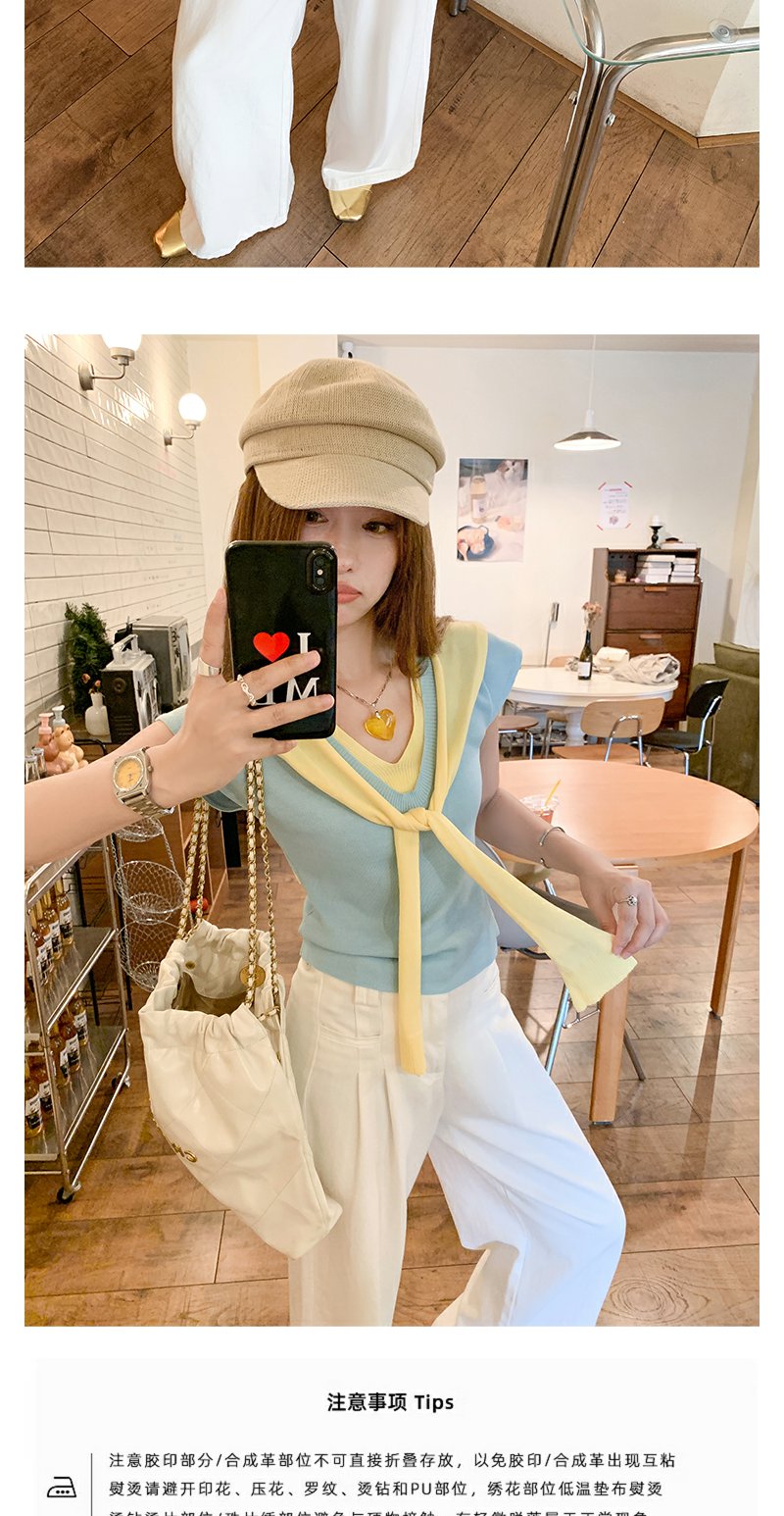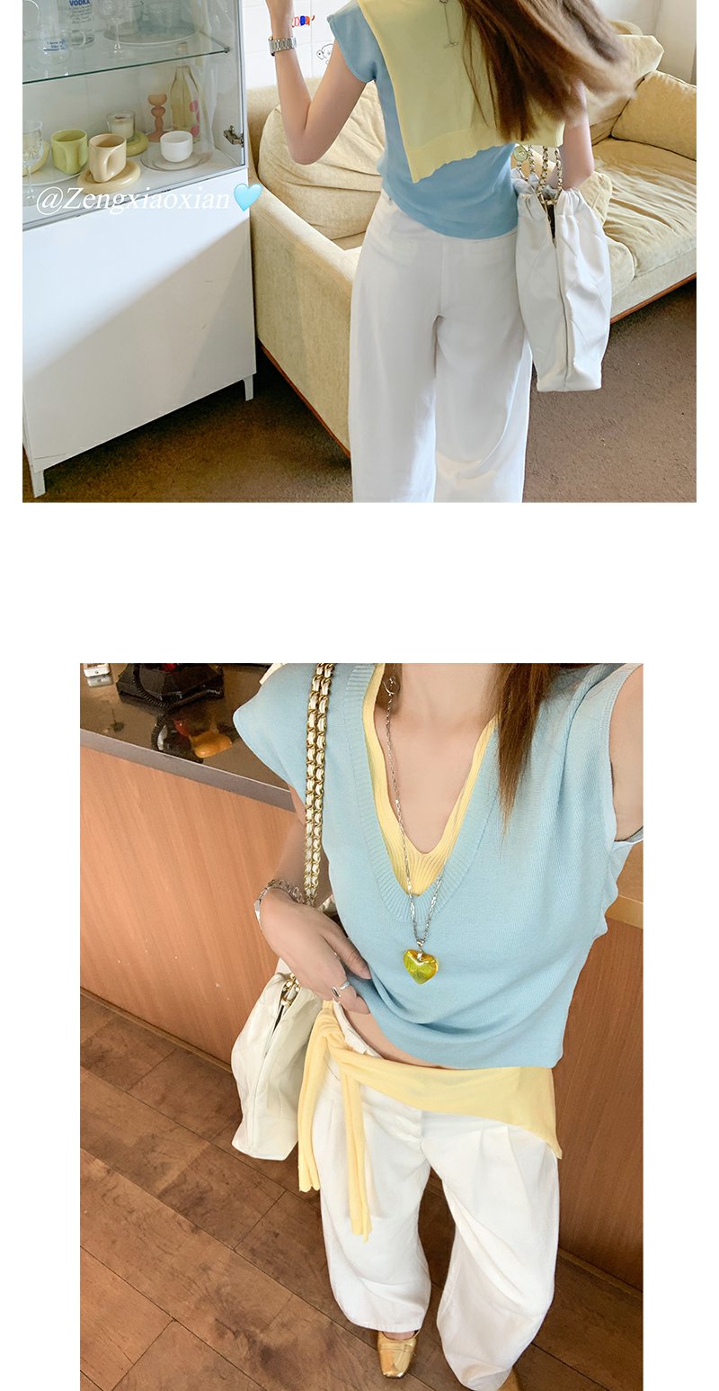 <曾小咸推荐>韩系撞色披肩绑带针织短袖T恤