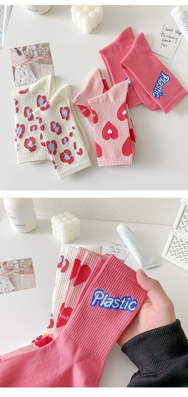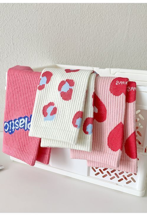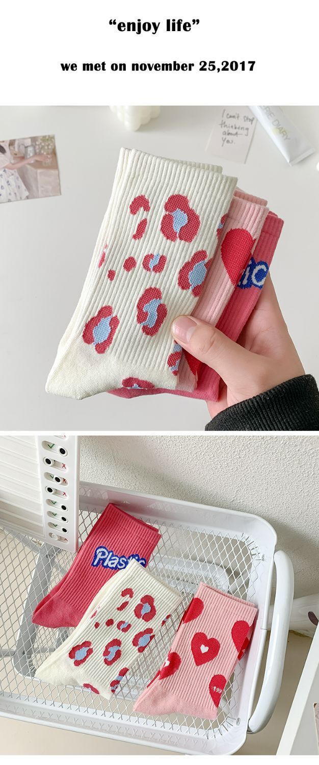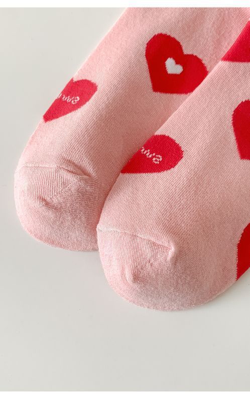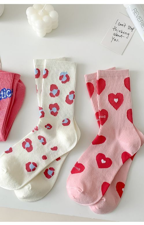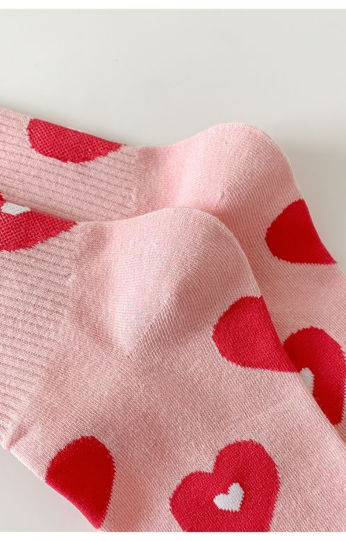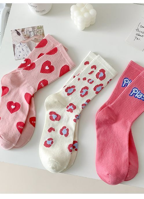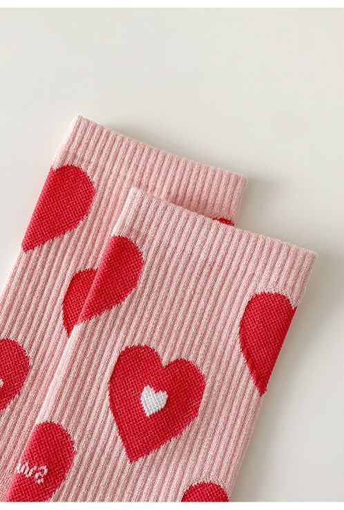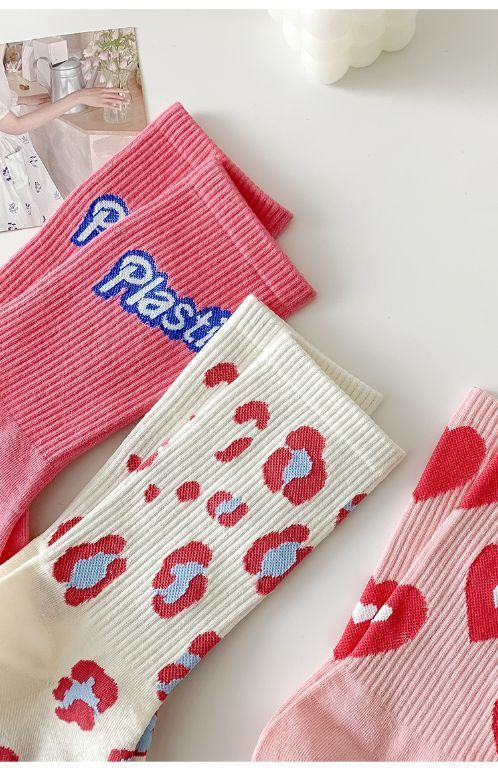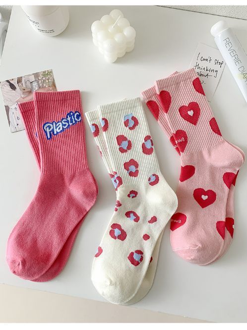 「19.9到手4双!中筒韩版」袜子女ins潮春秋粉色草莓爱心日系长袜女士线条个性女袜配饰