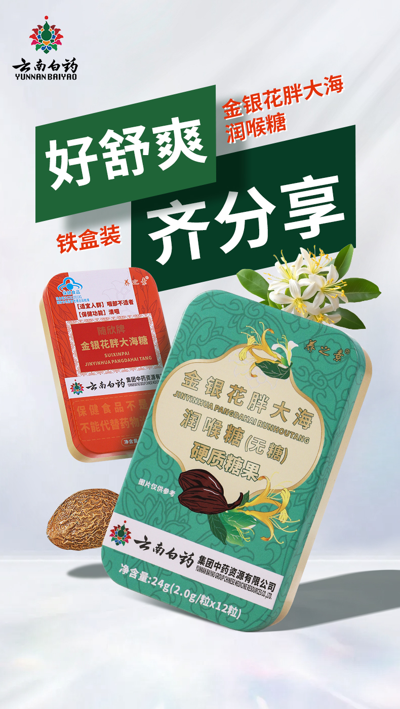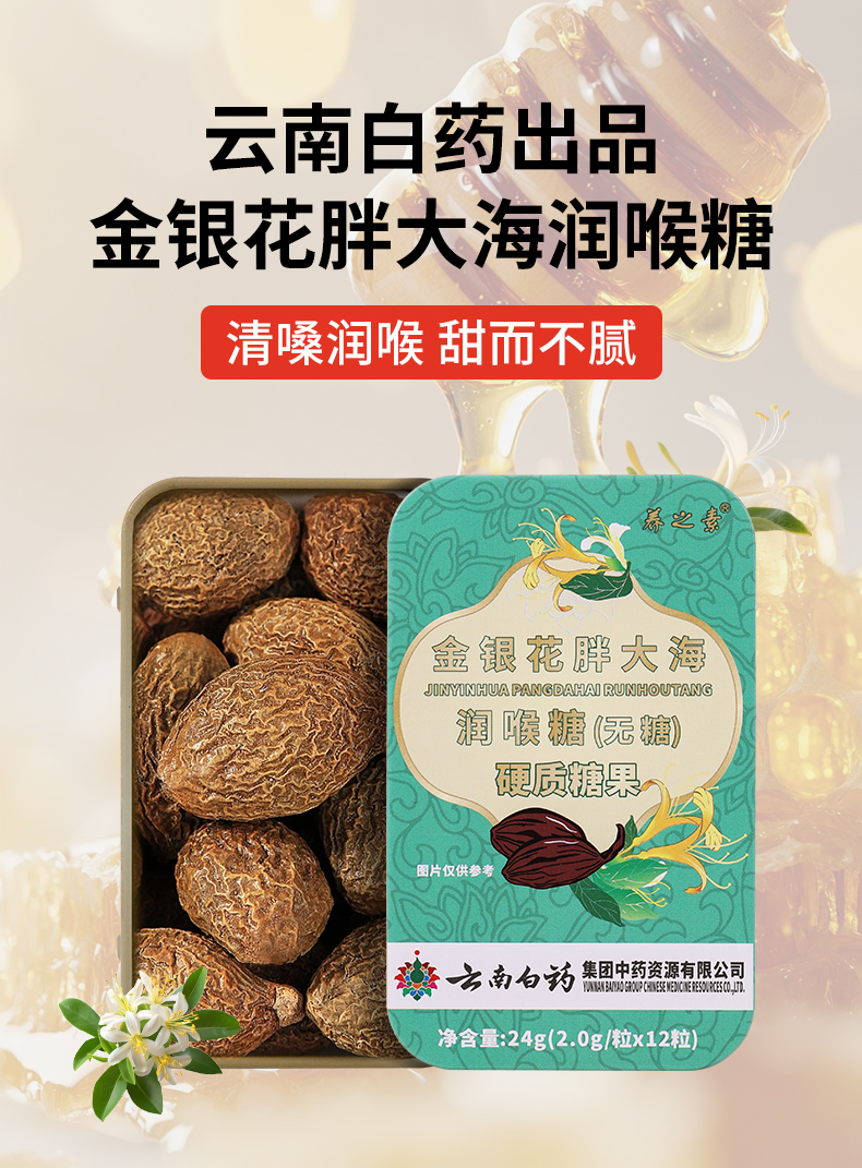 热卖中!!【云南白药国民品牌 传承122 年的健康守护】云南白药金银花胖大海润喉糖/无糖 清嗓润喉 清咽 一润二护 药食同源 滋养咽喉咽部不适者