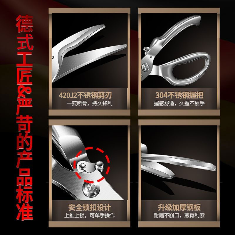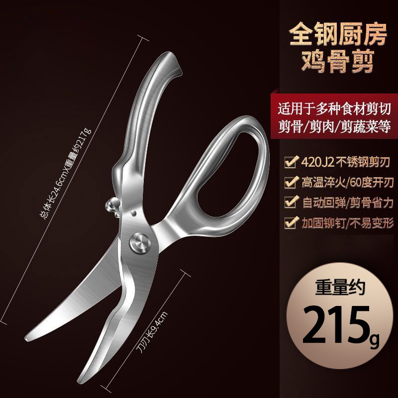 【跨境出口德国强力鸡骨剪】304不锈钢鸡骨剪家用厨房剪刀多用途强力鸡骨剪刀自动开合剪骨刀
