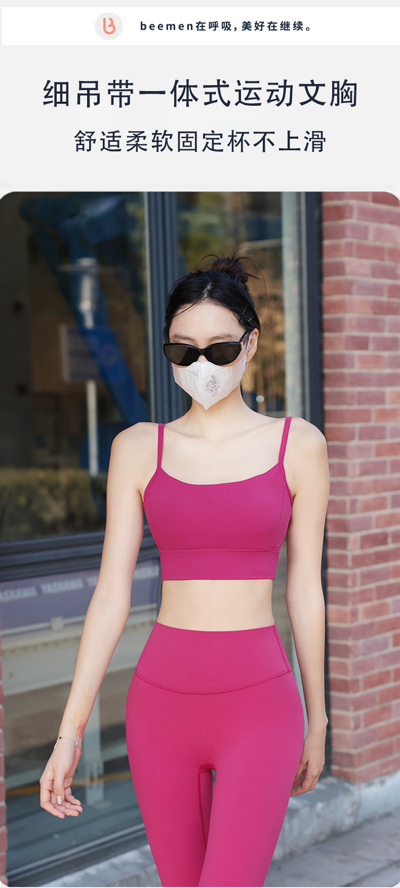 beemen一体式运动内衣女防震美背瑜伽服聚拢跑步文胸吊带背心健身衣