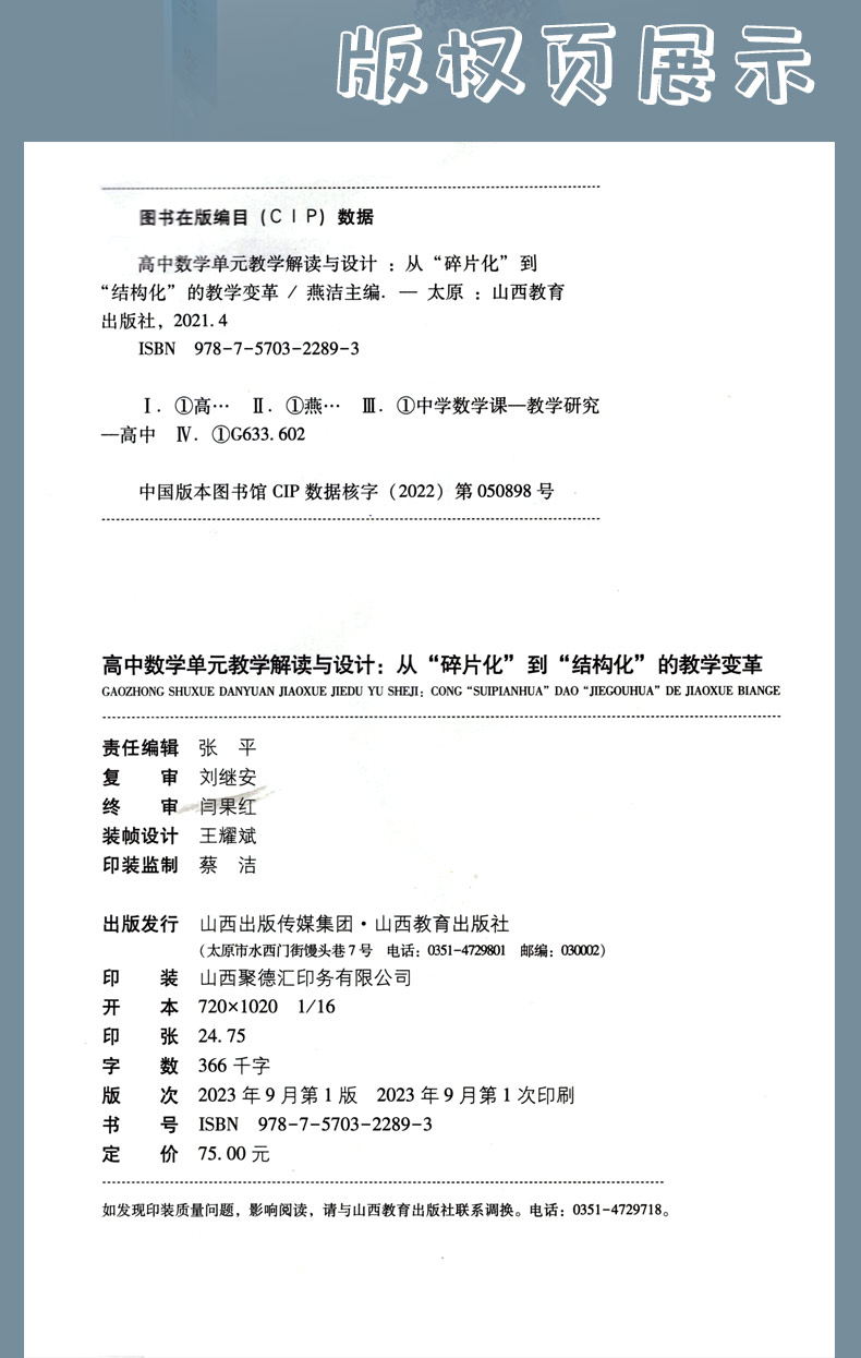 正版 高中数学单元教学解读与设计---从“碎片化”到“结构化”的教学变革