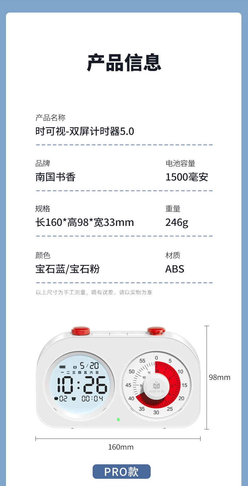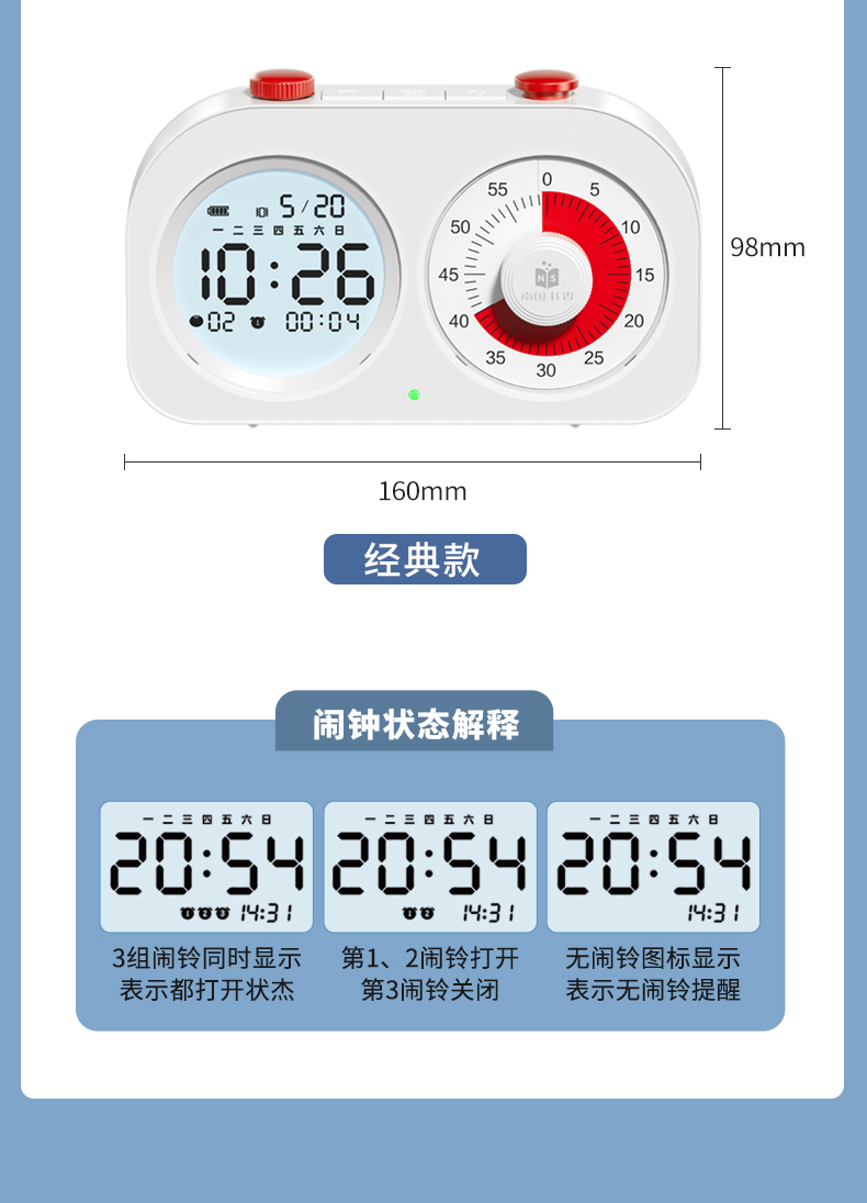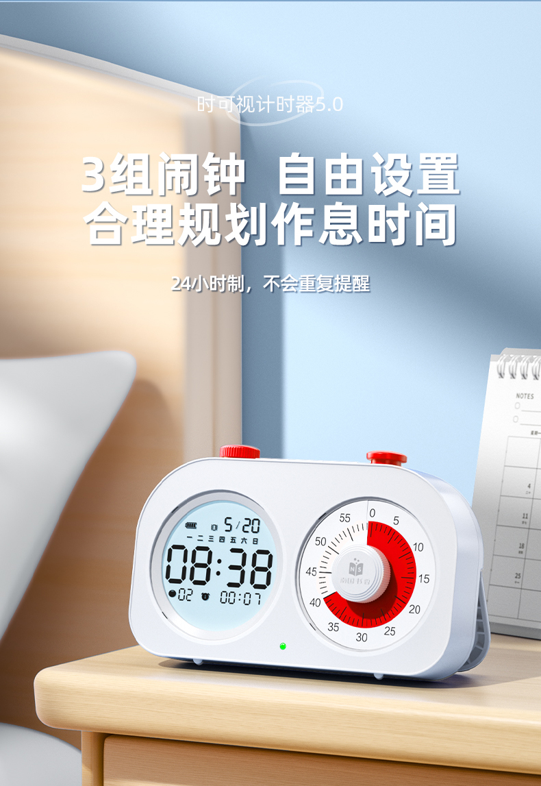 可视化计时器儿童学习专用时间管理器双屏定时器作业自律闹钟提醒