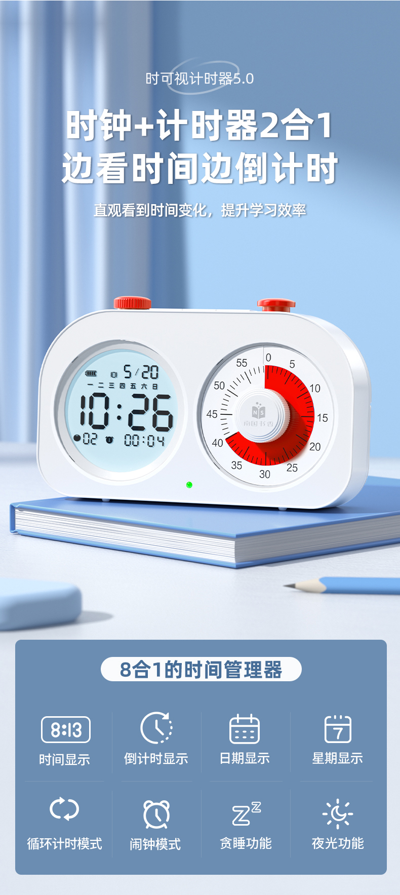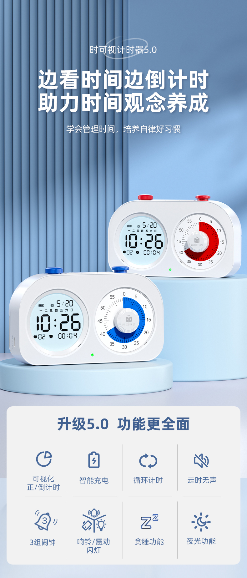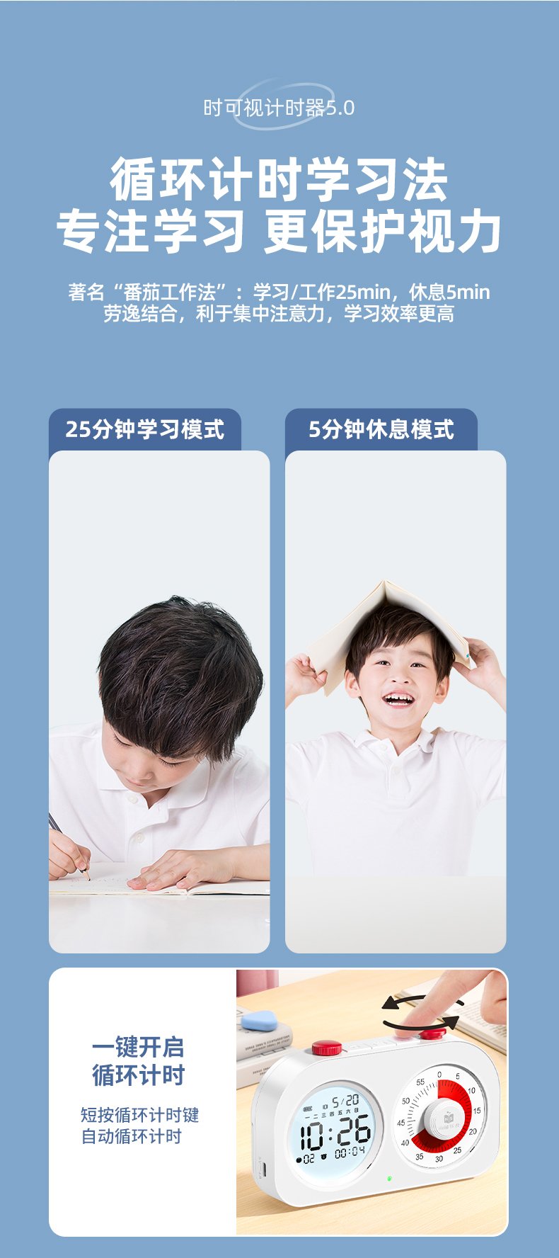 可视化计时器儿童学习专用时间管理器双屏定时器作业自律闹钟提醒