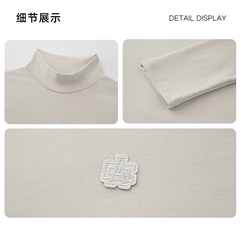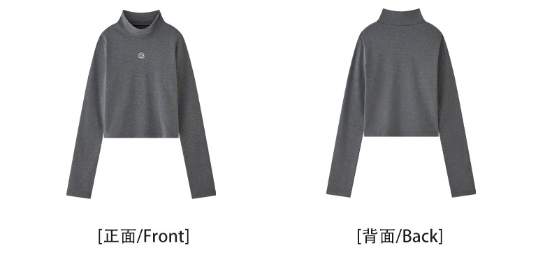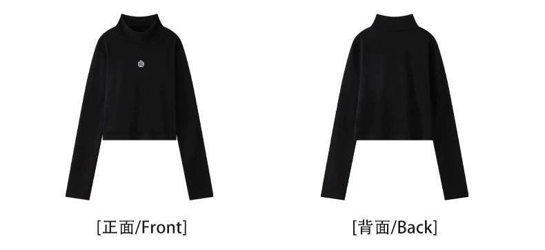 YKYB秋季长袖T恤修身保暖加绒纯色简约上衣短款高领打底衫女
