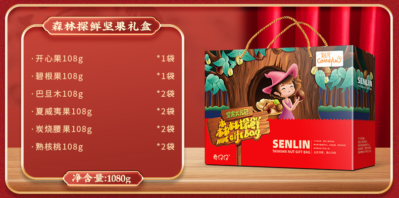【新年好礼!乐享食刻!】刻凡蛇年年货坚果礼盒 熟核桃碧根果 炭烧腰果巴旦木礼盒装 送礼团购佳品-QQ