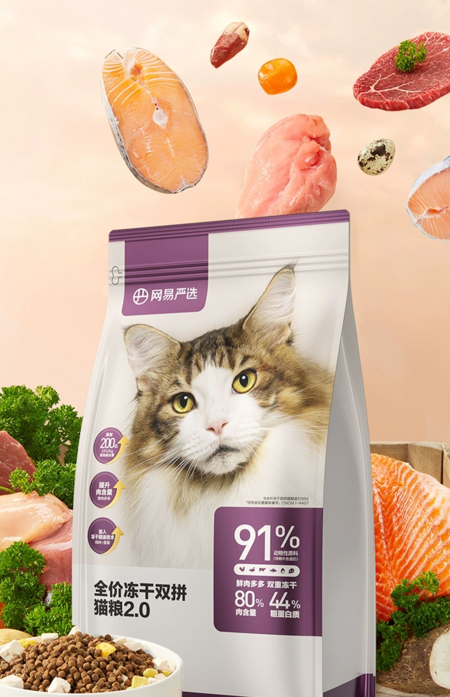 网易严选全价冻干双拼猫粮成幼猫天然无谷高肉粮120/500g