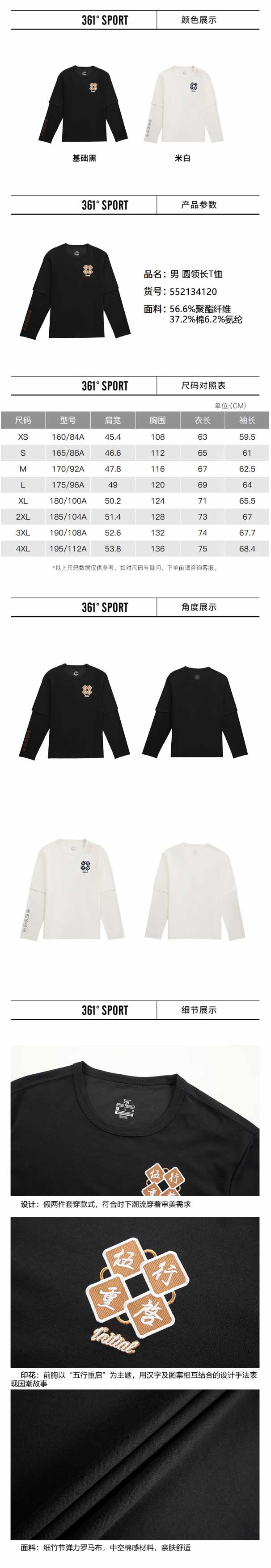 361度2021年秋季新款运动服 圆领长T恤552134120
